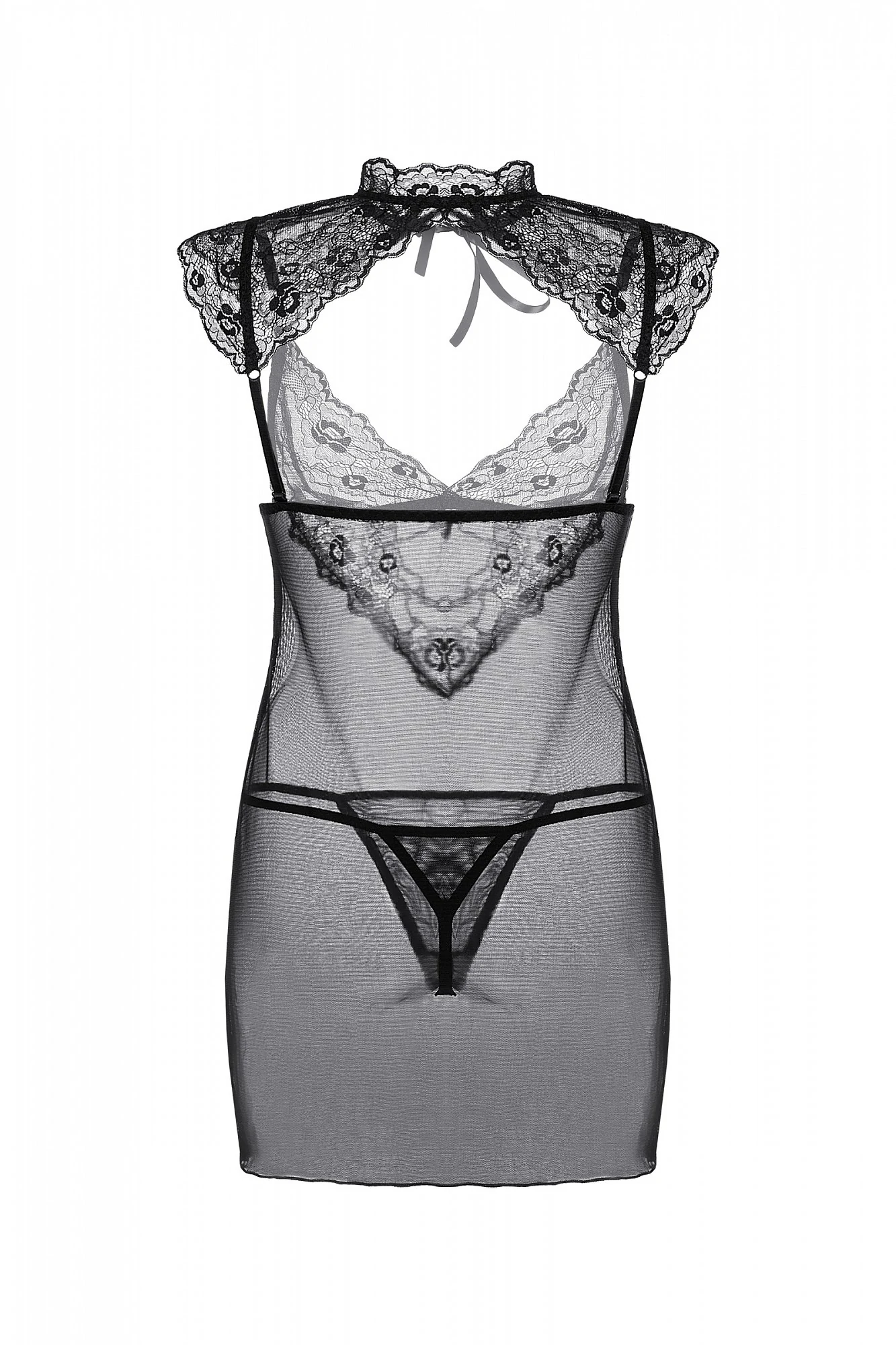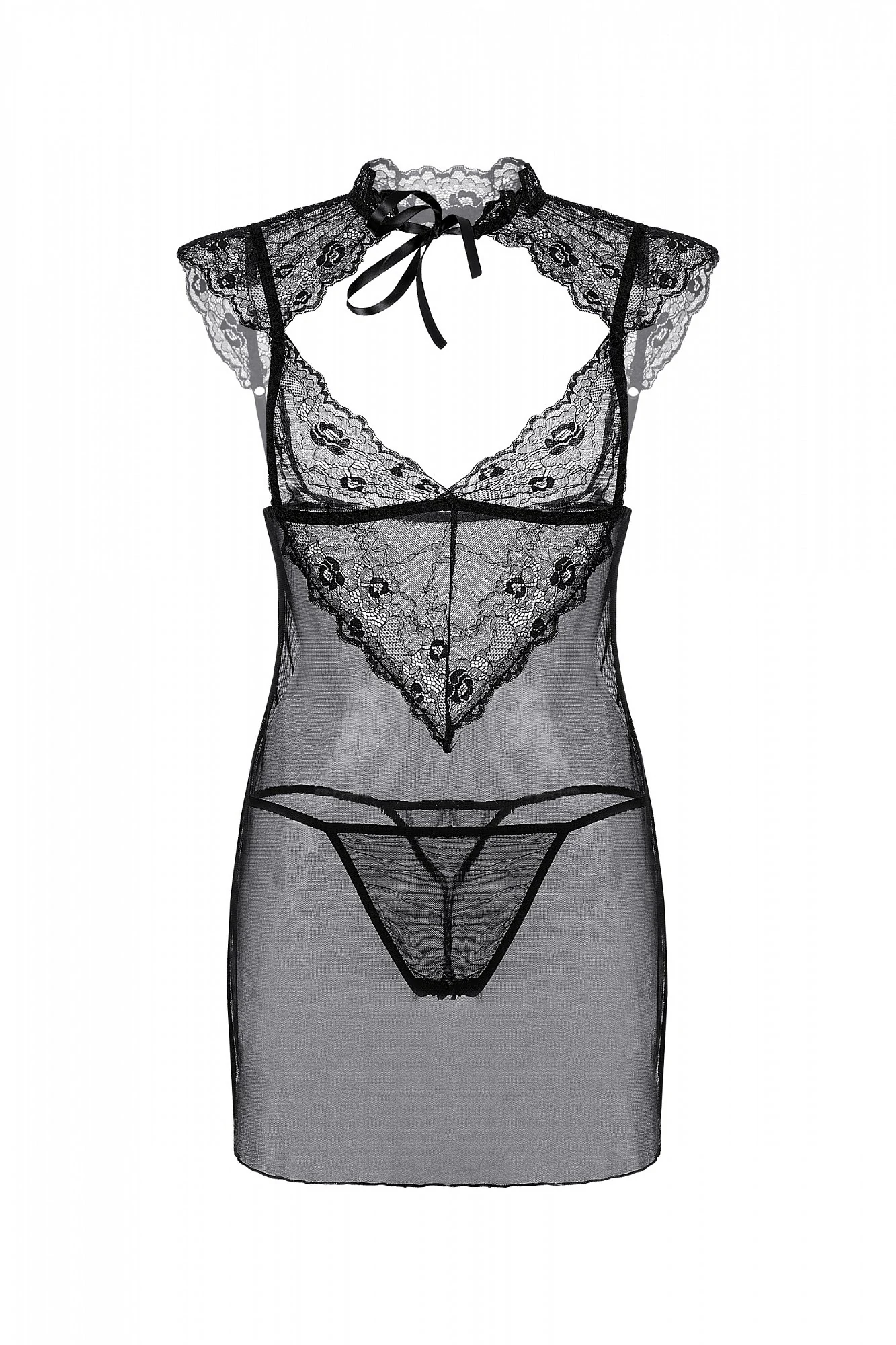 Прозрачная комбинация Luscious от Сandy Girl облегающего силуэта. Кружевной лиф с воротником-стойкой и мини-рукавами изящно обрамляет глубокое декольте и украшает спинку. Регулируемые бретели сзади обеспечивают идеальную посадку. Стринги из эластичной сетки входят в комплект. Размер: XL. Цвет:черный.