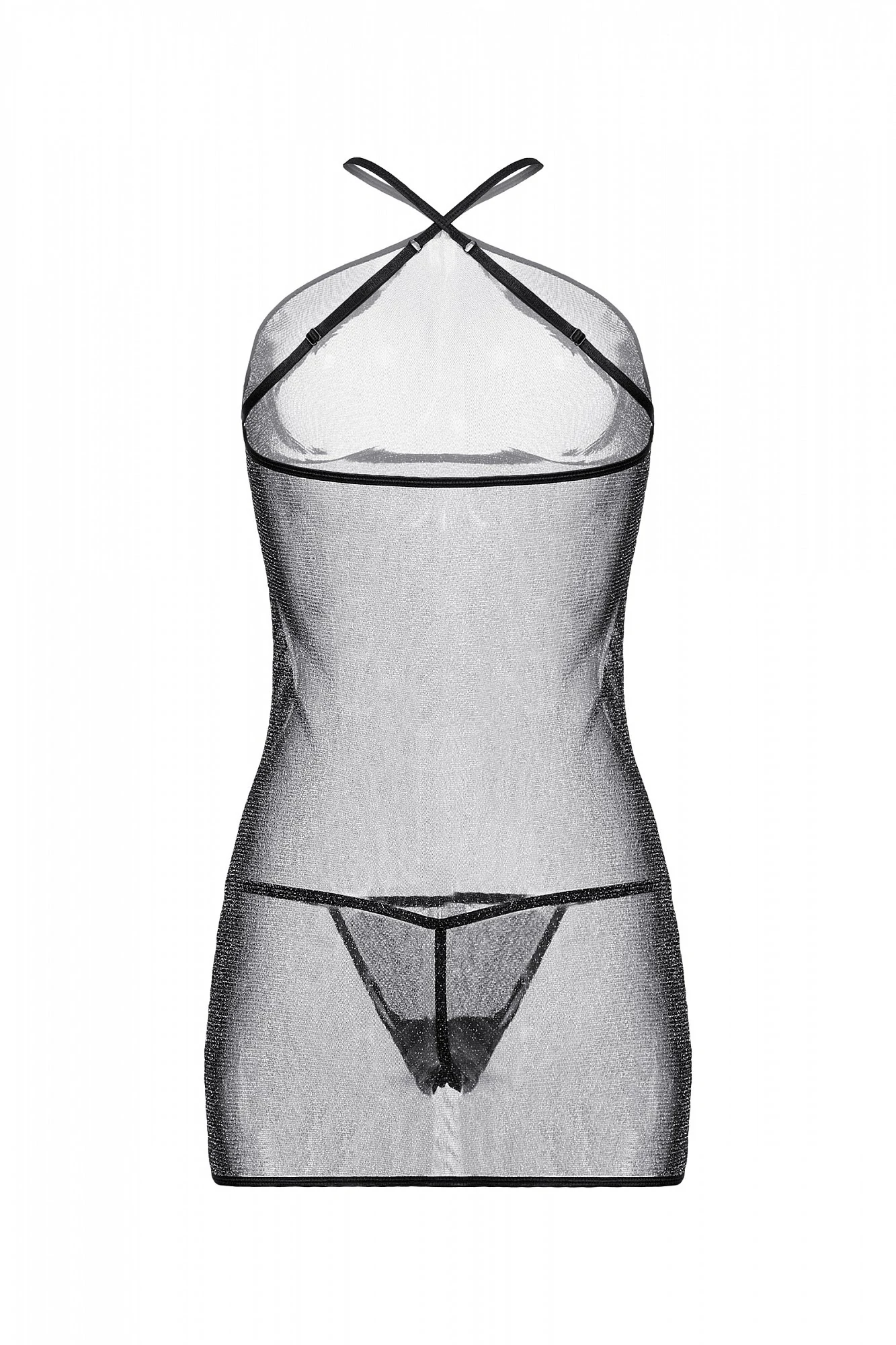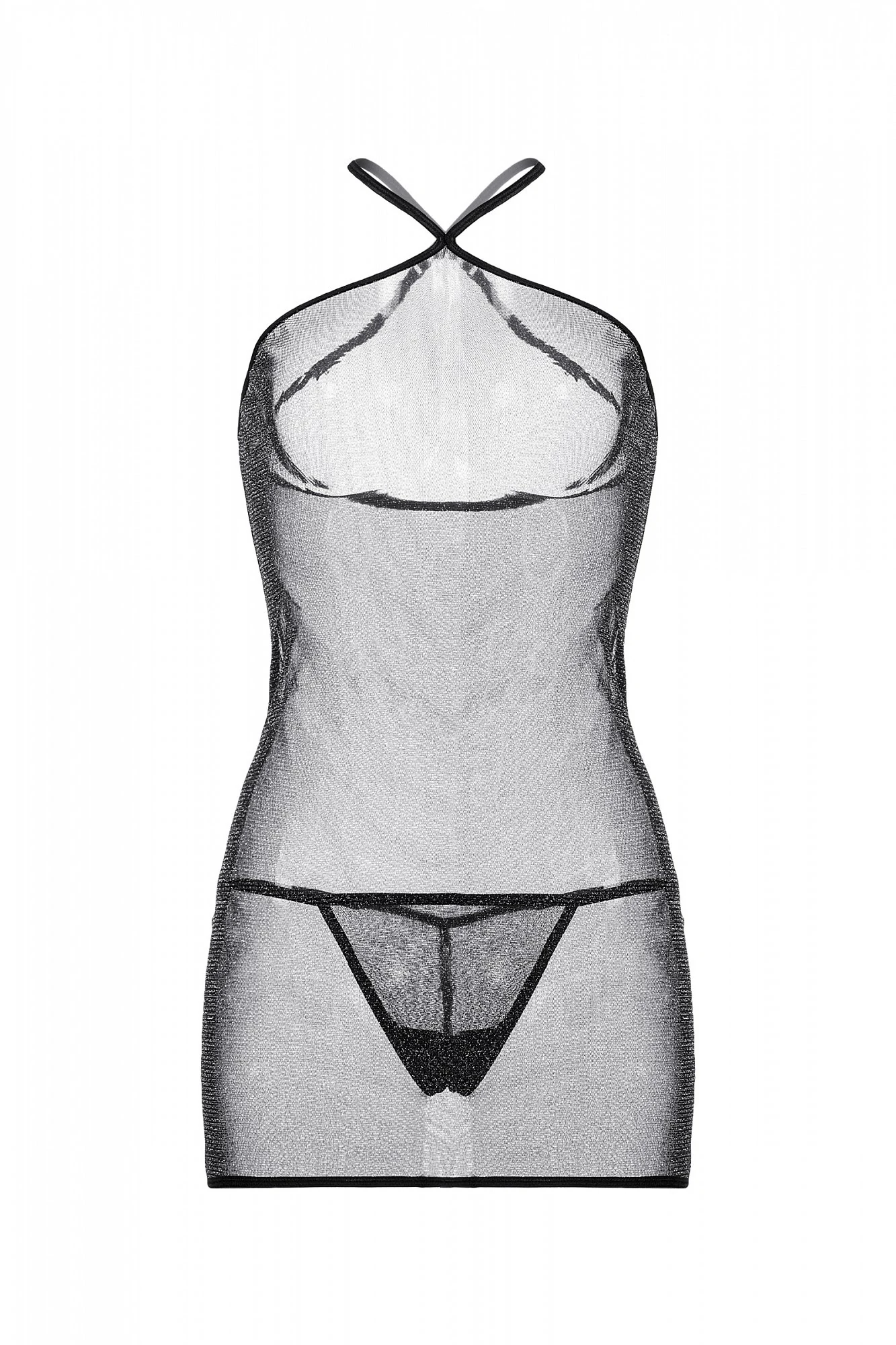Прозрачная комбинация и Т-стринги, выполненные из мягкого трикотажа с добавлением люрекса. Регулируемые перекрестные бретели комбинации обеспечивают прекрасную посадку.