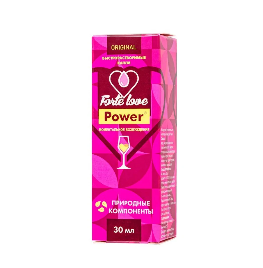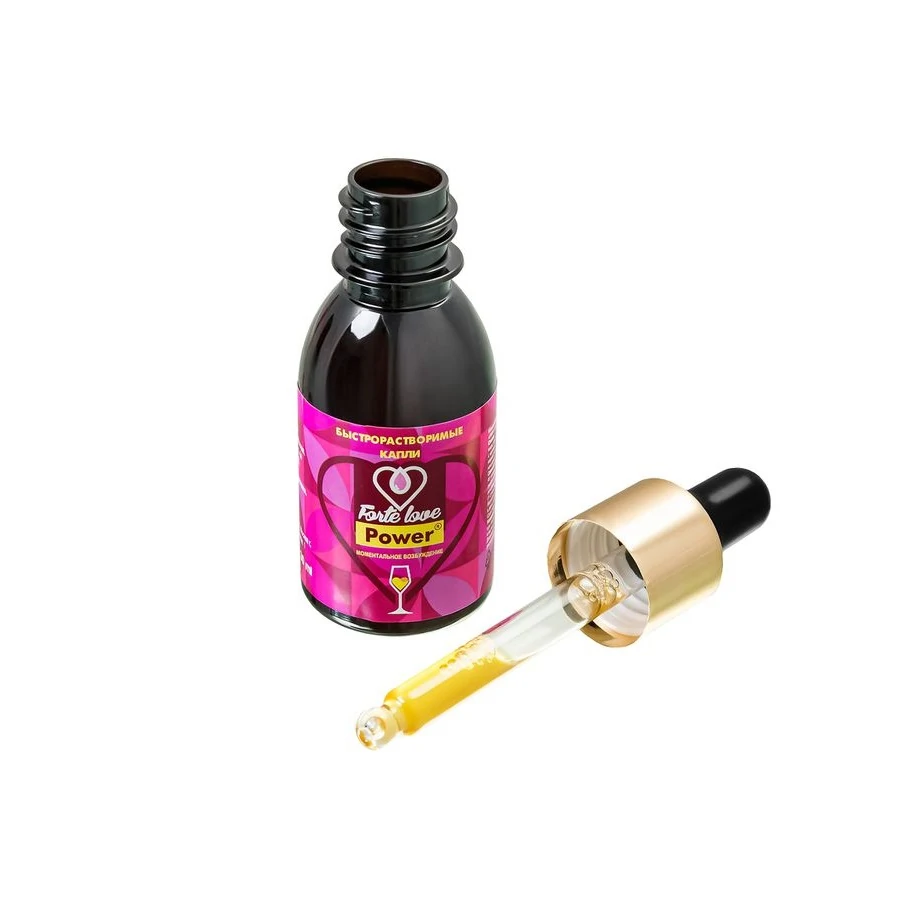 Помимо этого, средство позволяет получить еще больше удовольствия от секса. Forte Love Power помогает в достижении оргазма и улучшает самочувствие при климаксе, снимает психологические блоки и зажимы, раскрепощая, помогает дать волю чувствам. Возбуждающие капли Forte Love Power имеют полностью натуральный состав из природных компонентов и не вызывают привыкания! Быстрорастворимые капли без цвета и запаха совместимы с алкоголем. Способ применения: 45 капель (3 мл) концентрированного напитка развести в 100-200 мл воды или любого безалкогольного напитка. Перемешать, дождаться полного растворения содержимого (1-2 минуты) и выпить за 30 минут до полового акта. Объем: 30 мл. Противопоказания: индивидуальная непереносимость компонентов, беременность, период лактации.
