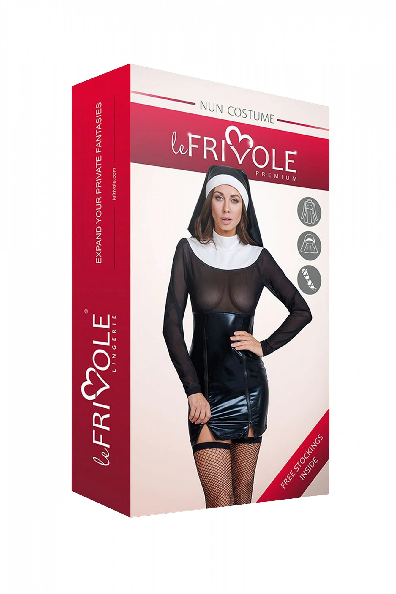 Перед вами цель – выбрать образ для костюмированной взрослой вечеринки или ролевой игры с партнером? Обратите внимание на этот Эротический костюм монашки, полупрозрачное миниатюрное платье соблазнительно обнажает грудь. Дерзкие чулки в сетку намекают на то, что обладательница комплекта вовсе не так скромна, как подобает монахине. Стилизованный головной убор позволяет максимально плотно вжиться в образ. В комплекте: платье, головной убор, чулки. Цвет: черно-белый. Размер: M/L.