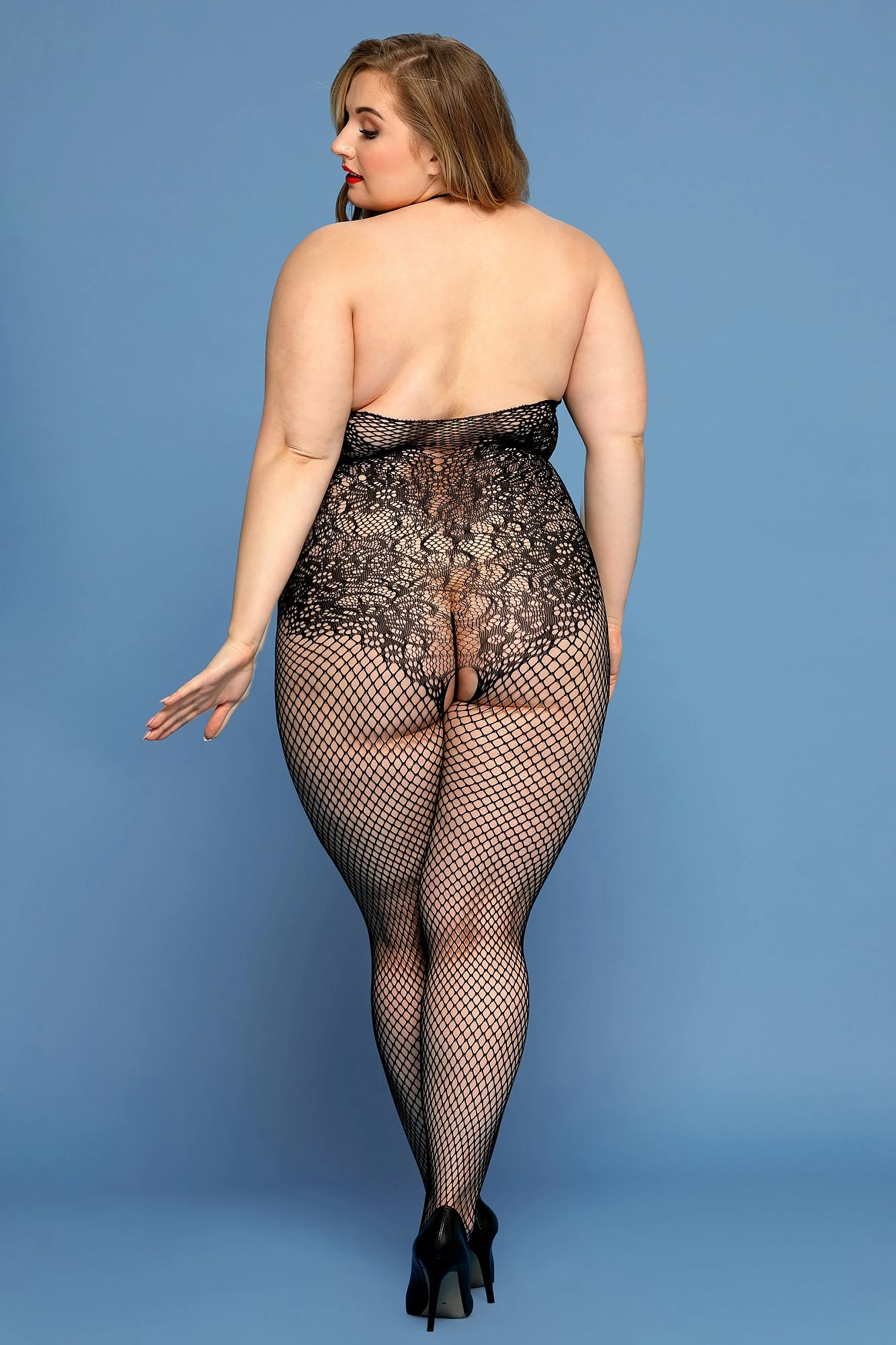 Облегающий бесшовный комбинезон Candy Girl Hera подчеркивает аппетитные женственные формы. Сочетание имитации ажурного боди и крупной сетки визуально делают силуэт стройнее. Визуальные акценты подчеркивают декольте, плечи и спинку, открытые для ласк и прикосновений. Завязки на шее легко развязать одной рукой и освободить грудь. Интимный доступ и усиленные носочки дарят комфорт при использовании. Благодаря эластичности комбинезон облегает фигуру как вторая кожа и не ограничивает движений. Размер: XXL. Цвет: черный.