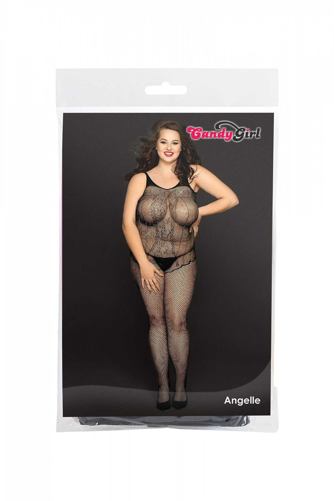 Эластичный бесшовный комбинезон из сетки c имитацией боди и чулок Candy Girl® Angelle спереди равномерно украшен россыпью серебристых страз в зоне груди и талии. Вырез в интимной зоне, стринги и усиленные мыски чулок обеспечивают комфорт и эстетичность при использовании. Размер 2XL. Цвет черный.