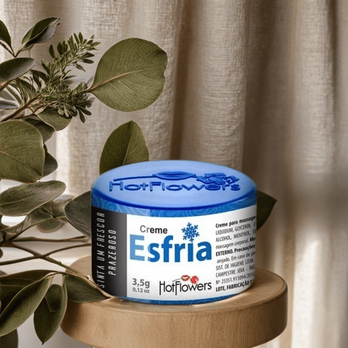 Крем Esfria с охлаждающим эффектом для наружного применения, вызывающий ощущения холодка, в упаковке для однократного применения. Способ применения: Нанесите на нужную зону и плавно массируйте круговыми движениями. ВНЕШНЕЕ ИСПОЛЬЗОВАНИЕ.