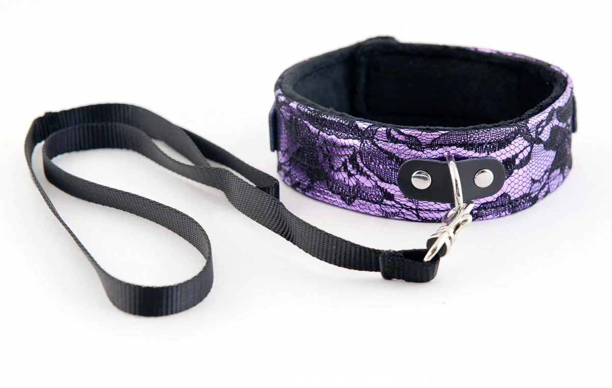 Кружевной ошейник с поводком — изящный атрибут для ограничения свободы партнёрши. С таким ошейником легко не только управлять покорностью рабыни, но и представлять, что всецело подчиняется настоящая королевская особа.