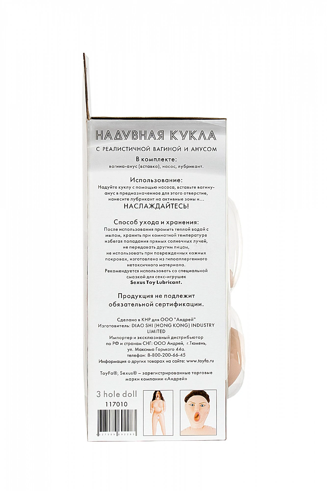 Эта надувная кукла с приоткрытым ротиком обладает соблазнительными отверстиями, выполненными из киберкожи. Такие анус и вагина практически ничем не отличаются от настоящих: они нежные и очень приятные на ощупь. А главное — они всегда готовы принять разгорячённую плоть! Остаётся лишь решить, кто будет ублажать сегодня — надувная блондинка, брюнетка, шатенка или рыжая. Рост 160 см.