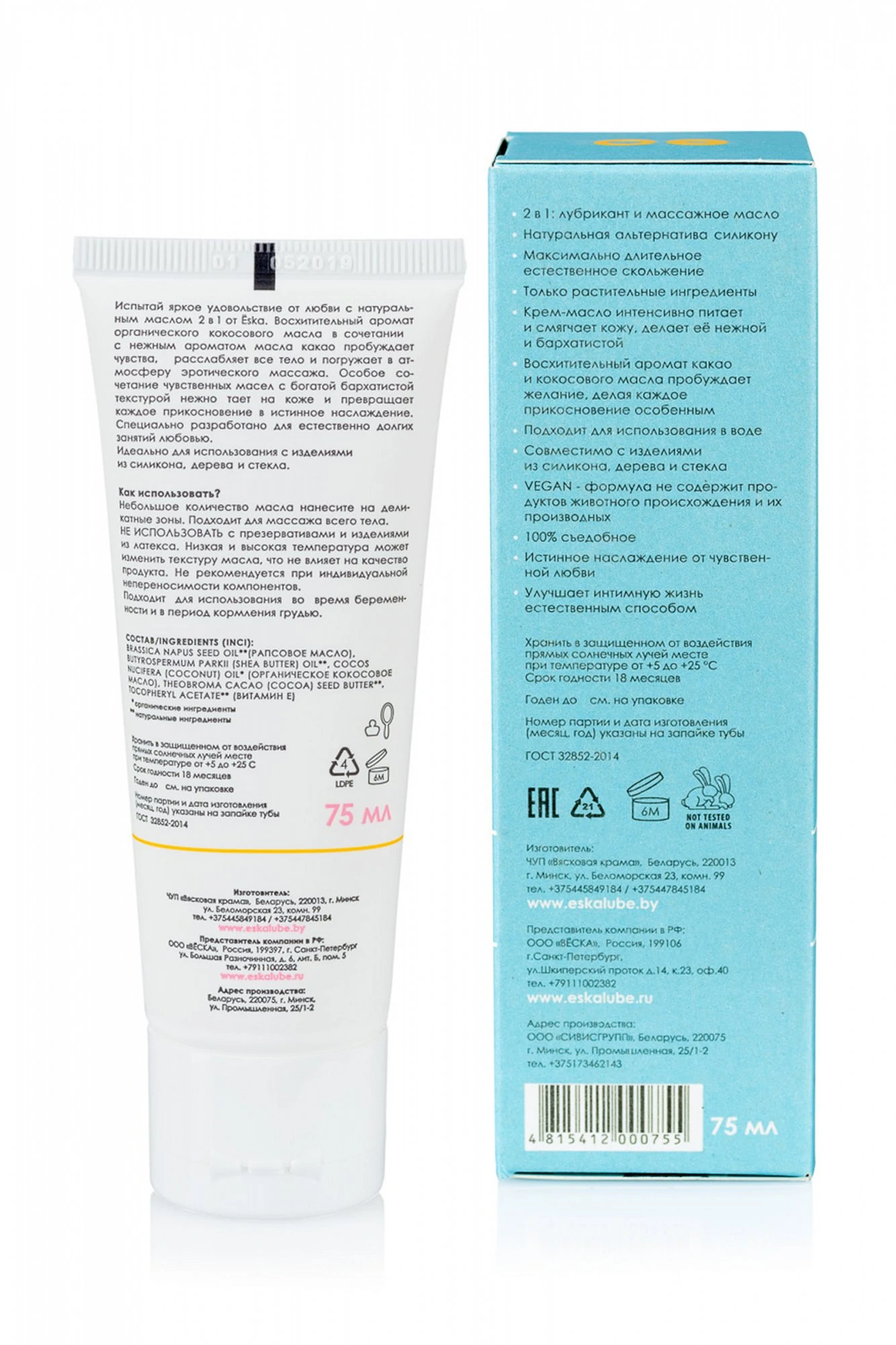 • 2 в 1: лубрикант и массажное масло