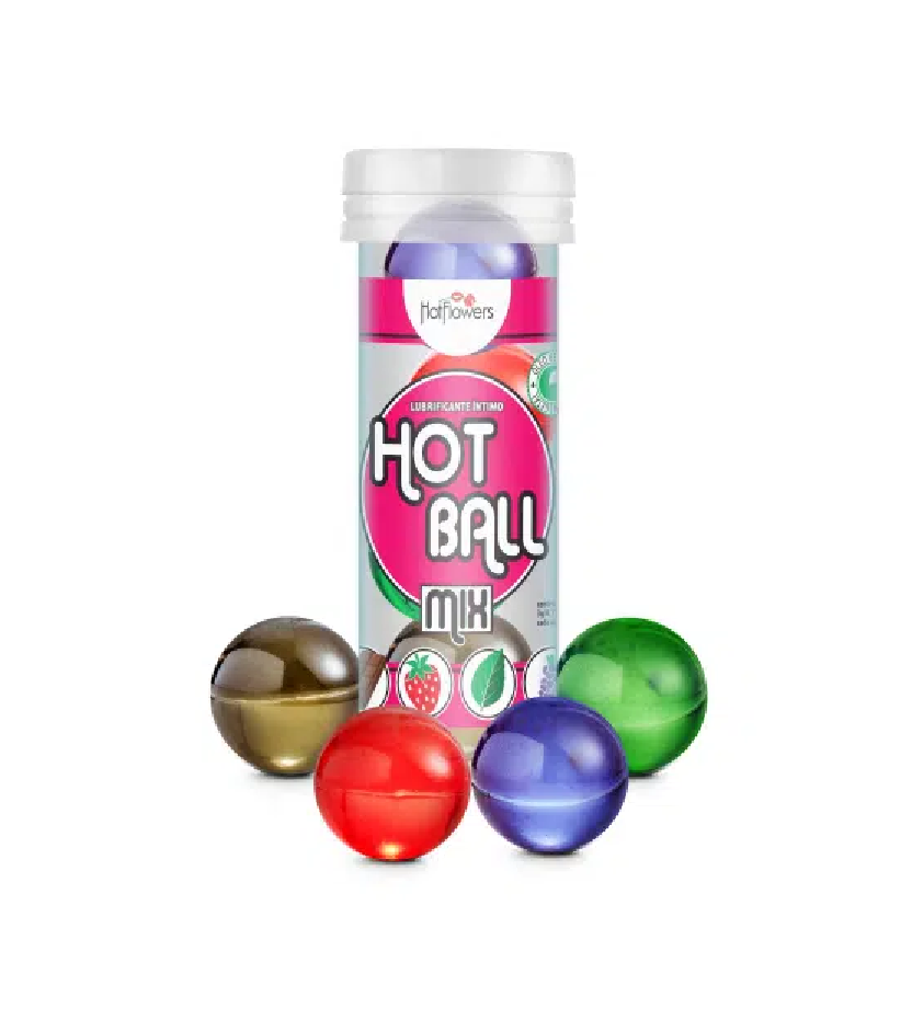 Ароматизированный лубрикант на масляной основе в виде 4 шариков (мята, шоколад, клубника, виноград). Знаменитые шарики удовольствия, ароматный Hot Ball, покрыты желатиновыми капсулами пищевого качества, они очень легко ломаются и выводятся или растворяются самим организмом после полового акта. Обладая различными ароматами и вкусами, они рекомендуются для орального секса, вагинальной и анальной смазки, мастурбации и массажа тела. Считаются наиболее чувствительными на чувственном рынке, поскольку они единственные в мире, которые зарегистрированы и выпущены на Anvisa на интимном уровне.