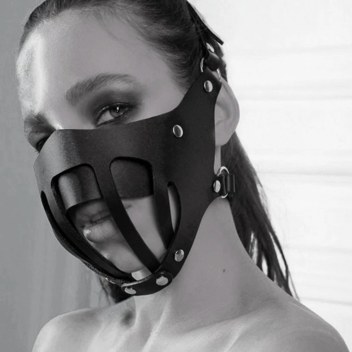 Нескромная маска БДСМ Disguise для любителей доминировать и подчиняться. Выполнена из экокожи, декорирована металлическими заклепками. Размер регулируется, что позволит носить БДСМ маску на любой голове. Размер: длина маски 20 см, ширина 15 см. Цвет черный.