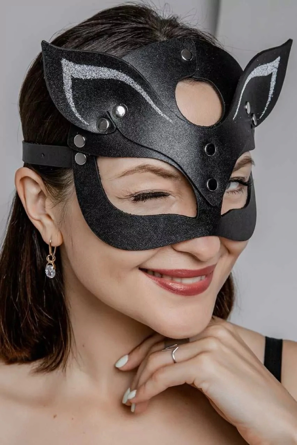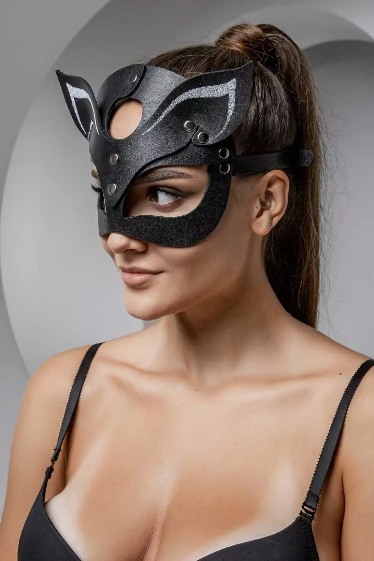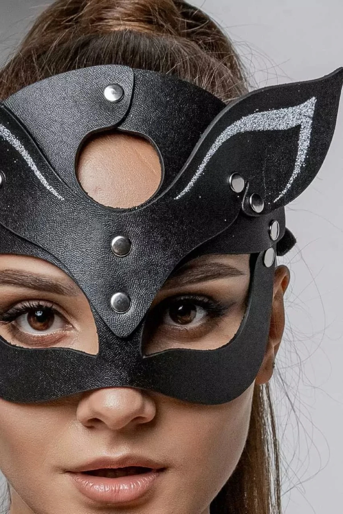 Маска Кошечки для BDSM игр поможет перевоплотиться в роковую госпожу или послушную чаровницу, внесёт в интимную жизнь яркость и разнообразие. Эротический аксессуар отличается высоким качеством исполнения. Благодаря ремешкам размер изделия можно регулировать в зависимости от диаметра головы. Размерный диапазон по окружности от 41 см. до 62 см. Ушки декорированы серебристым напылением. Толщина кожи 2.0.-2.2. мм. Размер: длина маски 21 см, высота маски 16 см, ширина ремешков 1,5 см. Маска изготовлена из натуральной кожи. Цвет черный.