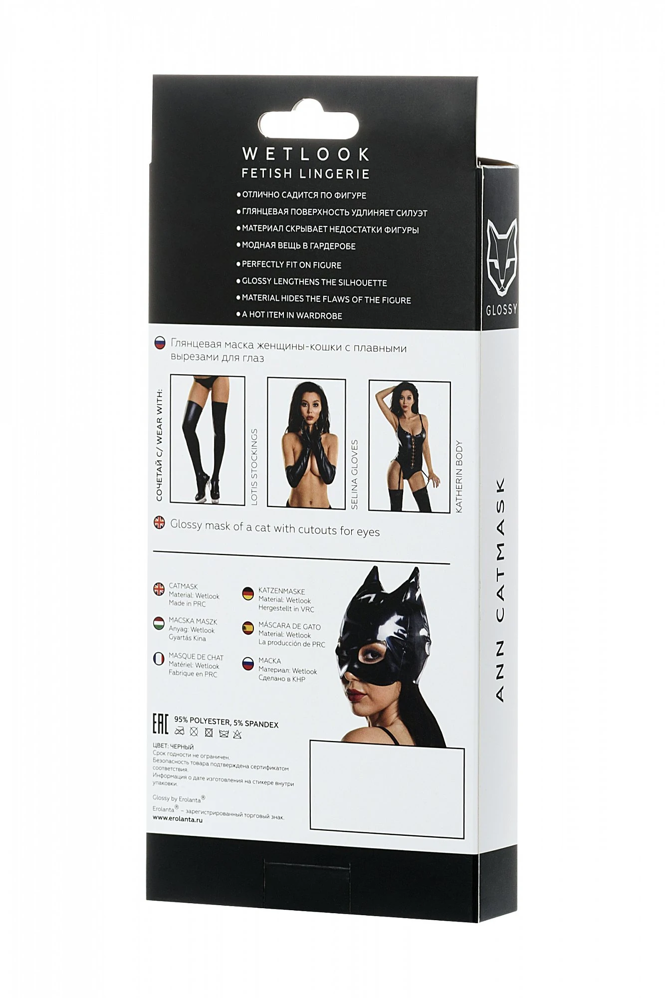 Встречайте новую, долгожданную и блестящую коллекцию белья из популярного материала Wetlook – Glossy. Маска отлично садится на лицо. Глянцевая маска женщины-кошки с плавными вырезами для глаз - идеальное завершение знаменитого сексуального образа кинематографа. Легко тянется и принимает нужную форму. Размер: универсальный.