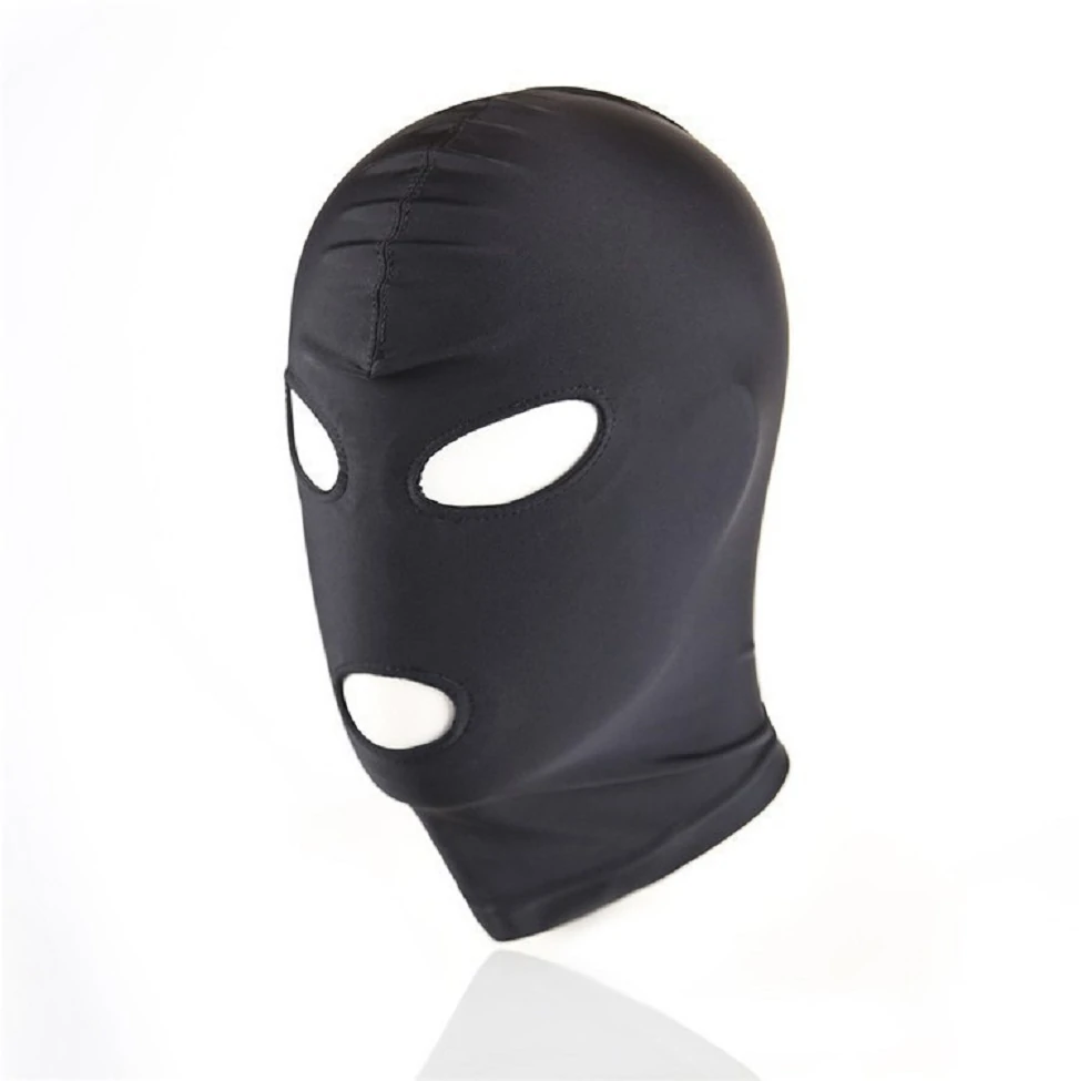 Маска-шлем с открытыми глазами и ртом черная идеальный аксессуар для ролевых игр, тонкий, но плотный материал, хорошо тянется. Цвет черный.