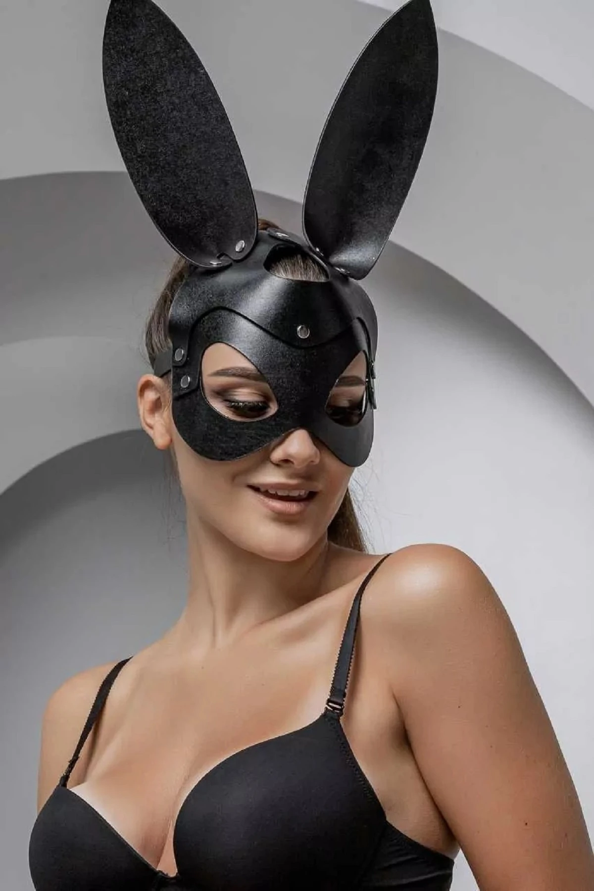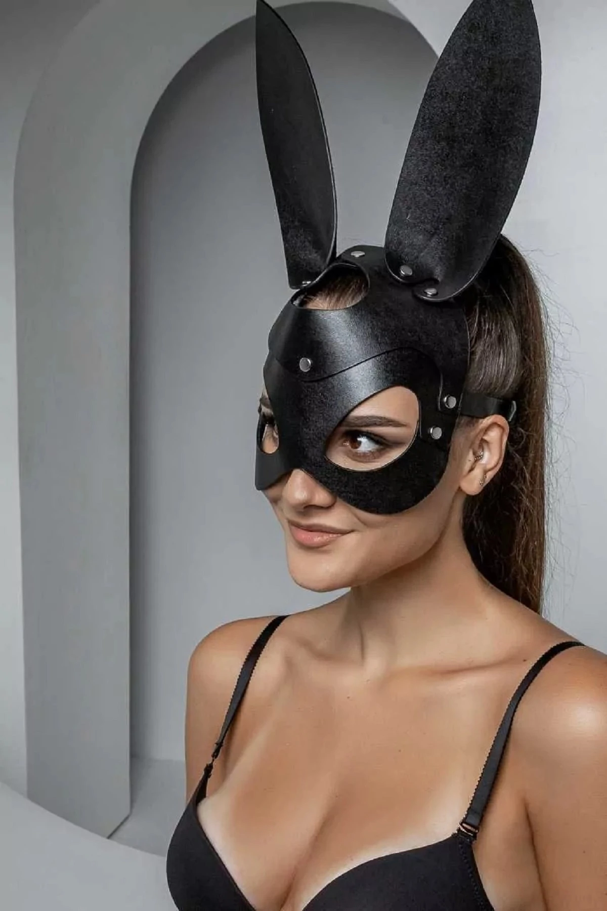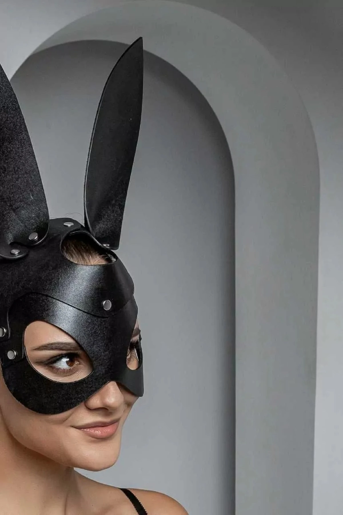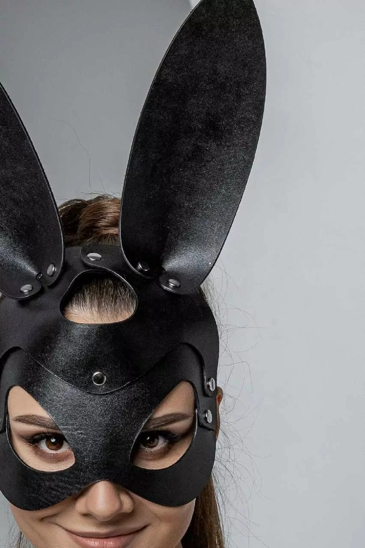 Для ценителей ролевых игр, для любителей секретов и тайн представляем маску Зайка. Загадка в том, окажется ли кроткий зайка коварным хищником, или под бархатом нежной кожаной маски с длинными ушками прячется ласковая обольстительница? Маска Зайка - это игривый и элегантный аксессуар, комфортно регулирующийся ремешками на голове хозяйки. Маска выполнена из мягкой натуральной кожи черного цвета. Соединения оформлены лаконичной фурнитурой серебряного цвета. Толщина кожи 2.0.-2.2. мм. Размерный диапазон по окружности от 44 см. до 64 см. Размер: общая длина с ремешками 64 см, длина маски 24 см, высота маски 35 см, ширина ремешков 1,4 см. Маска изготовлена из натуральной кожи. Цвет черный.