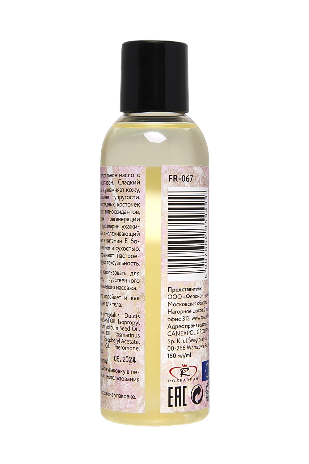 Уникальное природное масло Molecular pheromone имеет натуральный состав из бленда растений и стимулирующих желание феромонов. Масло можно использовать для чувственного или профессионального массажа, либо как уходовый продукт за кожей тела. Только для наружного применения. Сладкий миндаль питает и увлажняет кожу. Авокадо добавляет упругости. Масло из виноградных косточек – один из лучших антиоксидантов, способствующих регенерации кожи. Кунжут и розмарин ухаживают, оказывая омолаживающий эффект. Сандал и витамин Е борются с шелушением и сухостью. Феромоны поднимают настроение и стимулируют сексуальность. Объем: 150 мл.