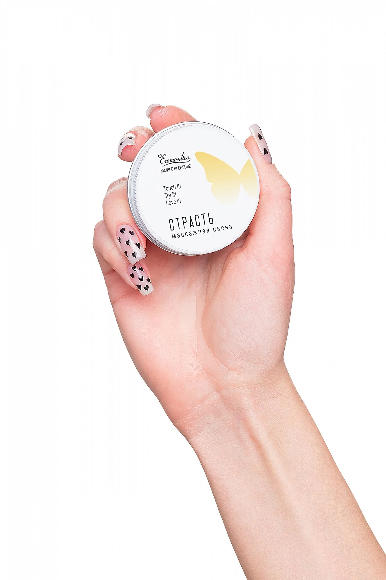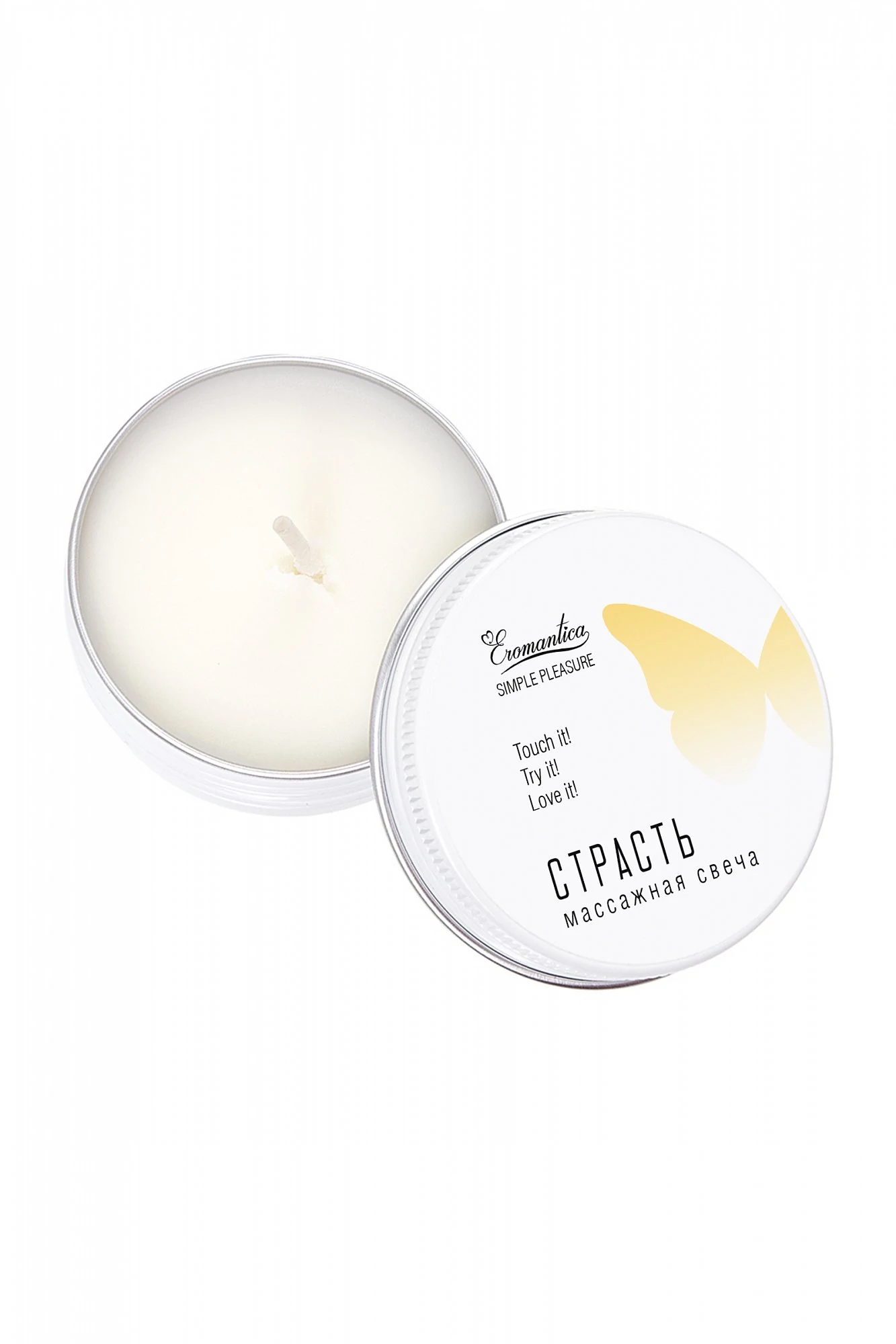 Коллекция косметики для массажа Eromantica Simple Pleasure это натуральные массажные масла в удобном формате. С ними ты можешь создавать романтическую атмосферу и наслаждаться роскошным уходом в любом месте и в любое время. Массажная свеча Eromantica Страсть релакс и уход в удобном формате. Как использовать: зажги свечу. Через 5-7 минут погаси ее и нанеси образовавшееся масло на тело легкими массажными движениями.