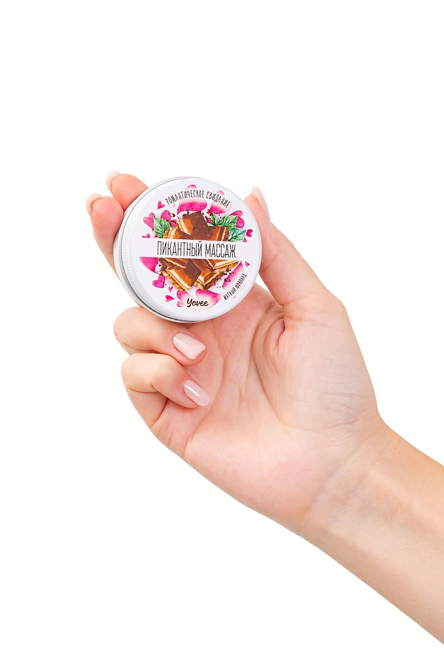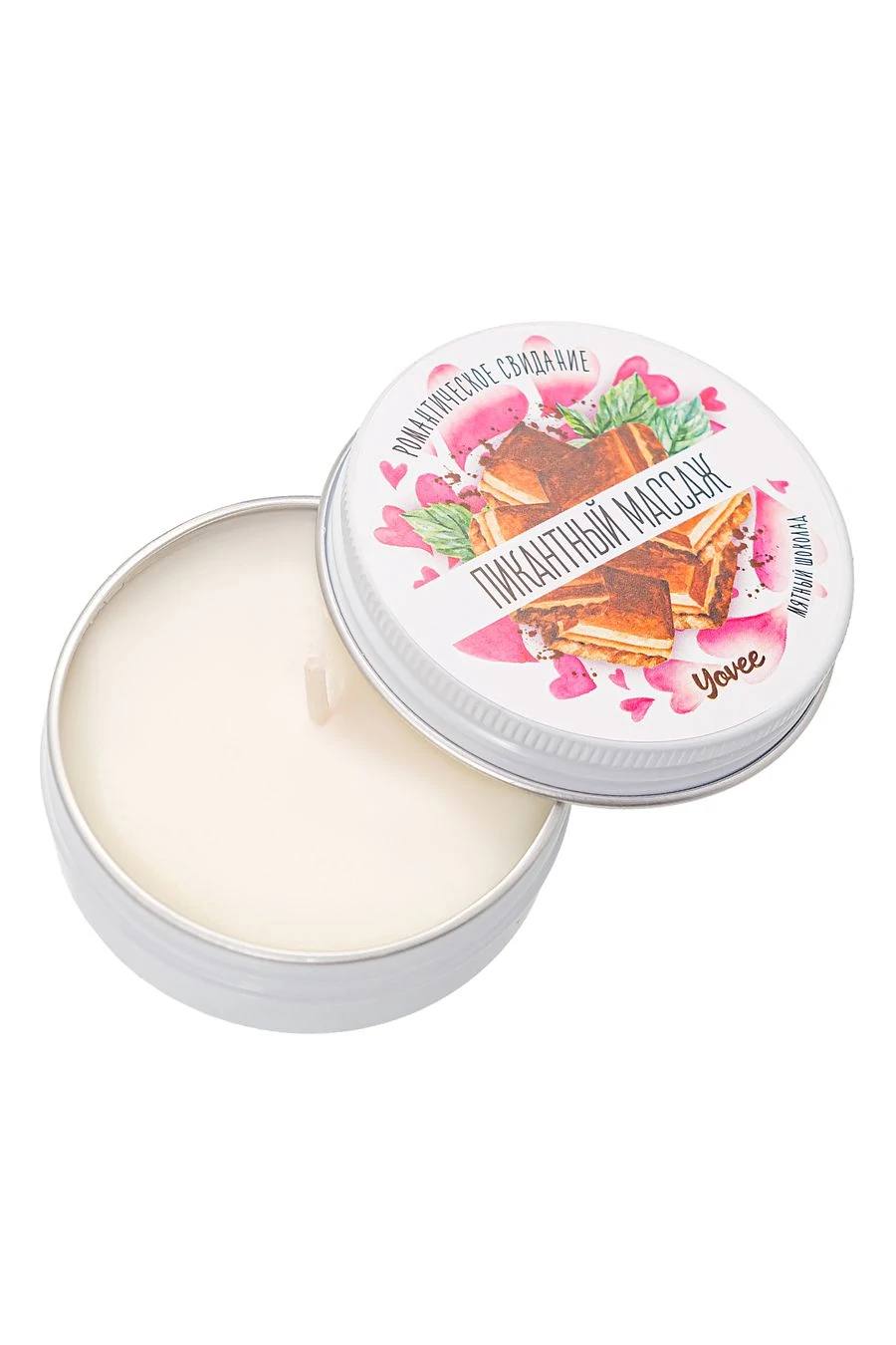 Массажная свеча Yovee «Пикантный массаж» с эфирным маслом, с ароматом «Мятный шоколад» - изысканный аксессуар для романтического свидания. Изготовлена из натуральных масел, которые питают, увлажняют, смягчают кожу и делают её шелковистой. Сладкий аромат с ментоловым оттенком остается легким шлейфом, напоминая о проведенных минутах блаженства. Благодаря праздничному дизайну упаковки свеча отлично подходит в качестве презента.