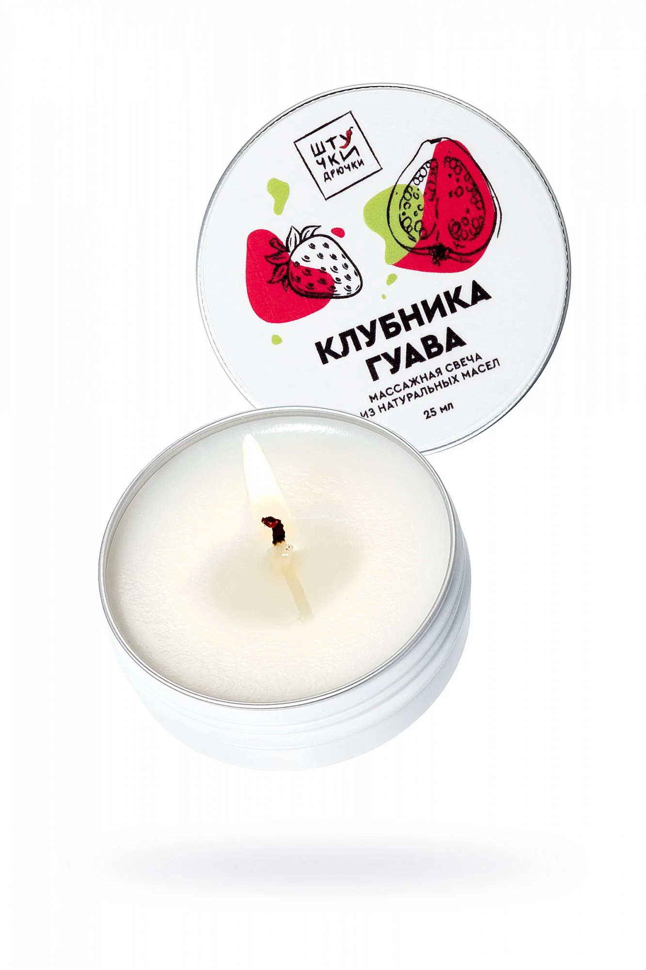 Романтический вечер при свечах непременно закончится массажем, если одна из свечей массажная. Массаж – подходящий способ проявить заботу и внимание, а массажная свеча с ароматом клубники и гуавы способна оживить романтические отношения и растопить сложный день. Сочетание теплого масла и чувственных прикосновений расслабляет и погружает в негу блаженства. Волнующий аромат клубники и гуавы обволакивает и дарит еще более уютные и комфортные ощущения, раскрываясь нотами персика, манго и ванили. Натуральные масла какао и миндаля увлажняют и насыщают кожу питательными веществами. Упругая, нежная и потрясающе бархатистая кожа – к ней хочется прикасаться всем телом. Посвятите время ритуалу любви с массажной свечой “Клубничная гуава”. Способ применения: зажгите фитиль свечи на 15-20 минут. За это время растопится необходимое для массажа масло и помещение наполнится ароматом свечи. Потушите фитиль и дайте некоторое время маслу остыть, затем вылейте масло на кожу и приступайте к массажу.
