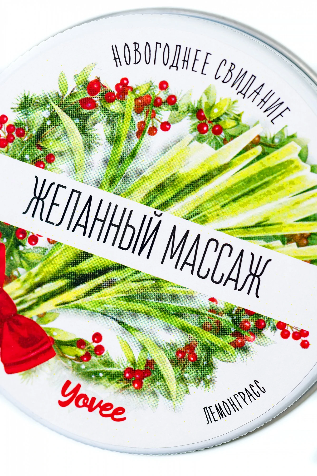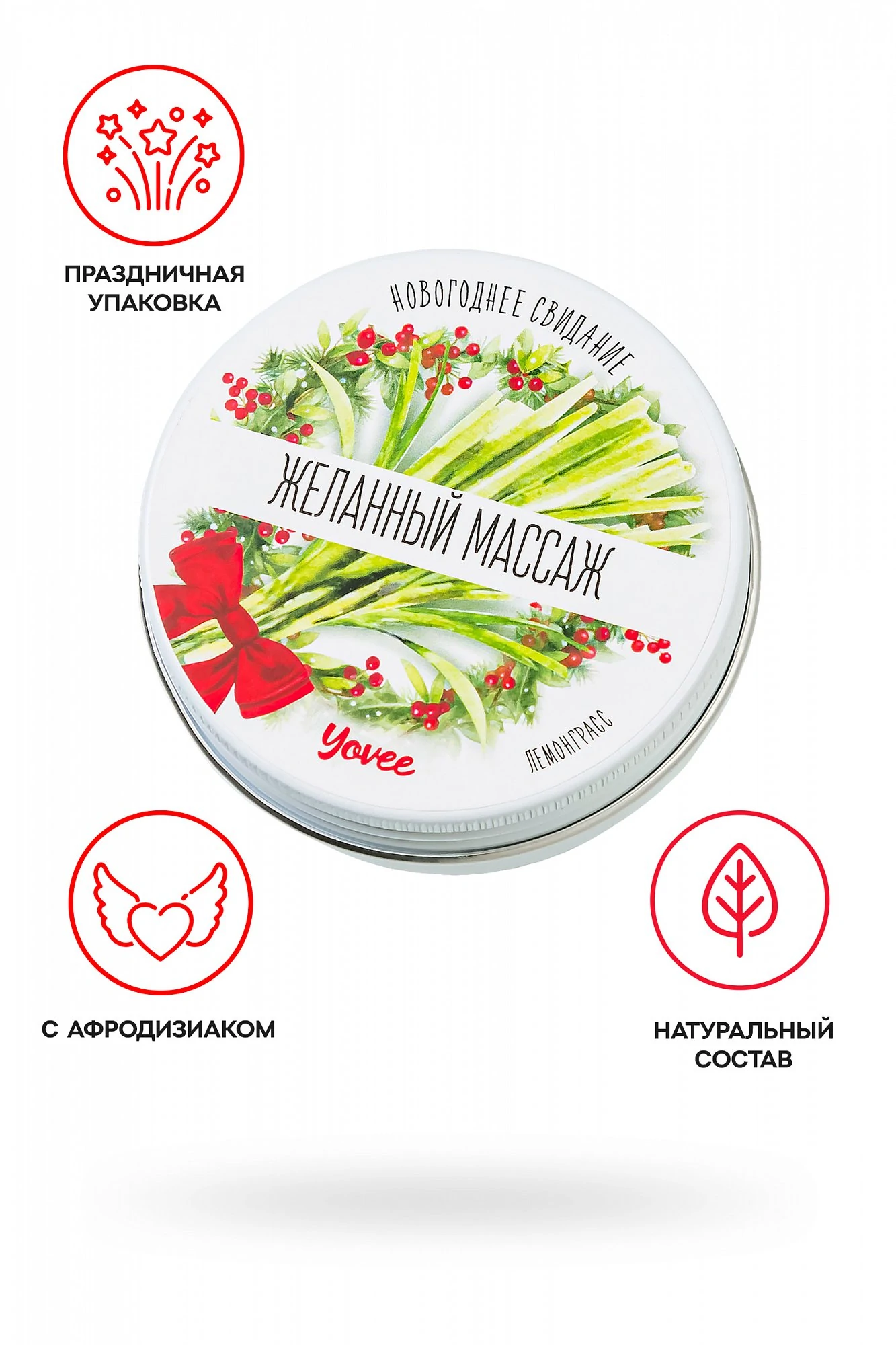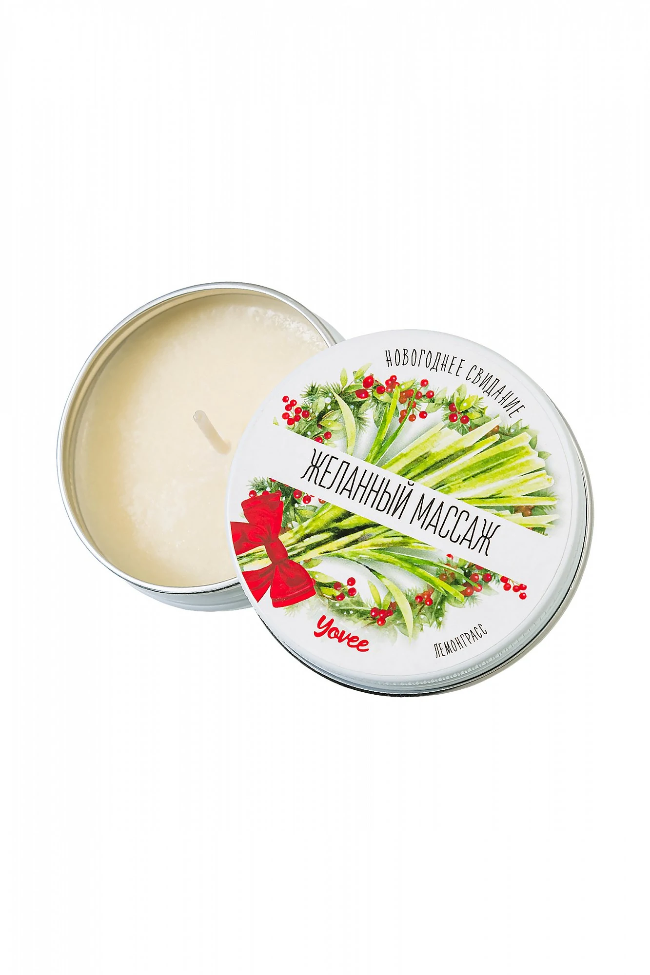 Массажная свеча Yovee Желанный массаж с афродизиаком Лемонграсс - изысканный аксессуар для новогоднего свидания. Изготовлена из 100% натуральных масел, которые питают, увлажняют, смягчают кожу и делают её шелковистой. Сочный цитрусовый аромат остается легким шлейфом, напоминая о проведенных минутах блаженства. Основа свечи - гидрогенизированное соевое масло, которое идеально смешивается с уходовыми и эфирным маслами, а при комнатной температуре приобретает плотность воска. При горении свечи твердый воск расплавляется в тёплое массажное масло, не обжигающее кожу. Предназначена для наружного применения. Не содержит парафина. Не подходит для ароматизации помещения, использования в качестве лубриканта.