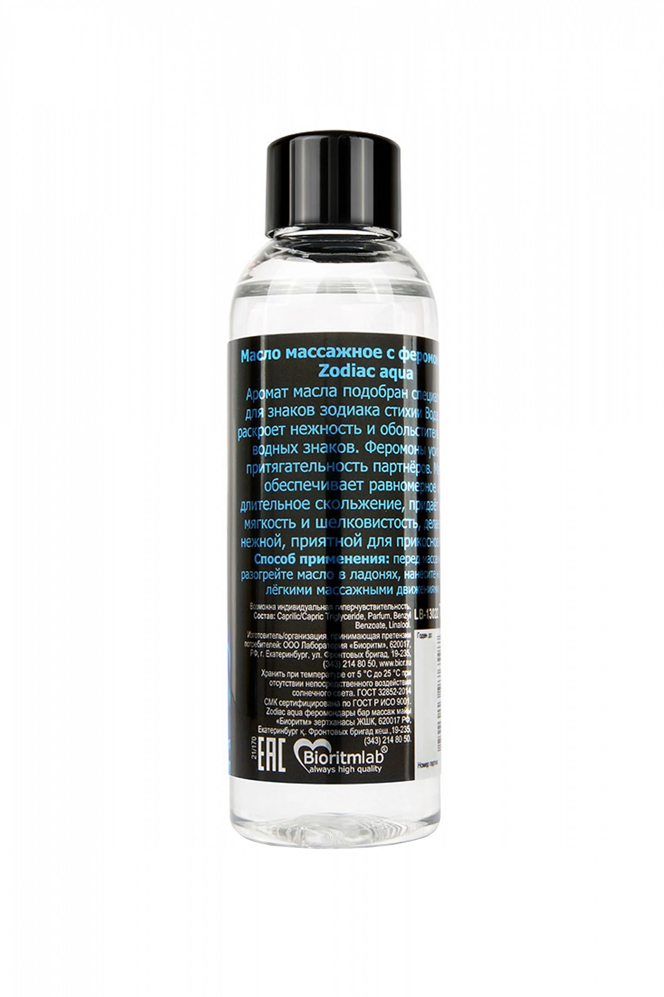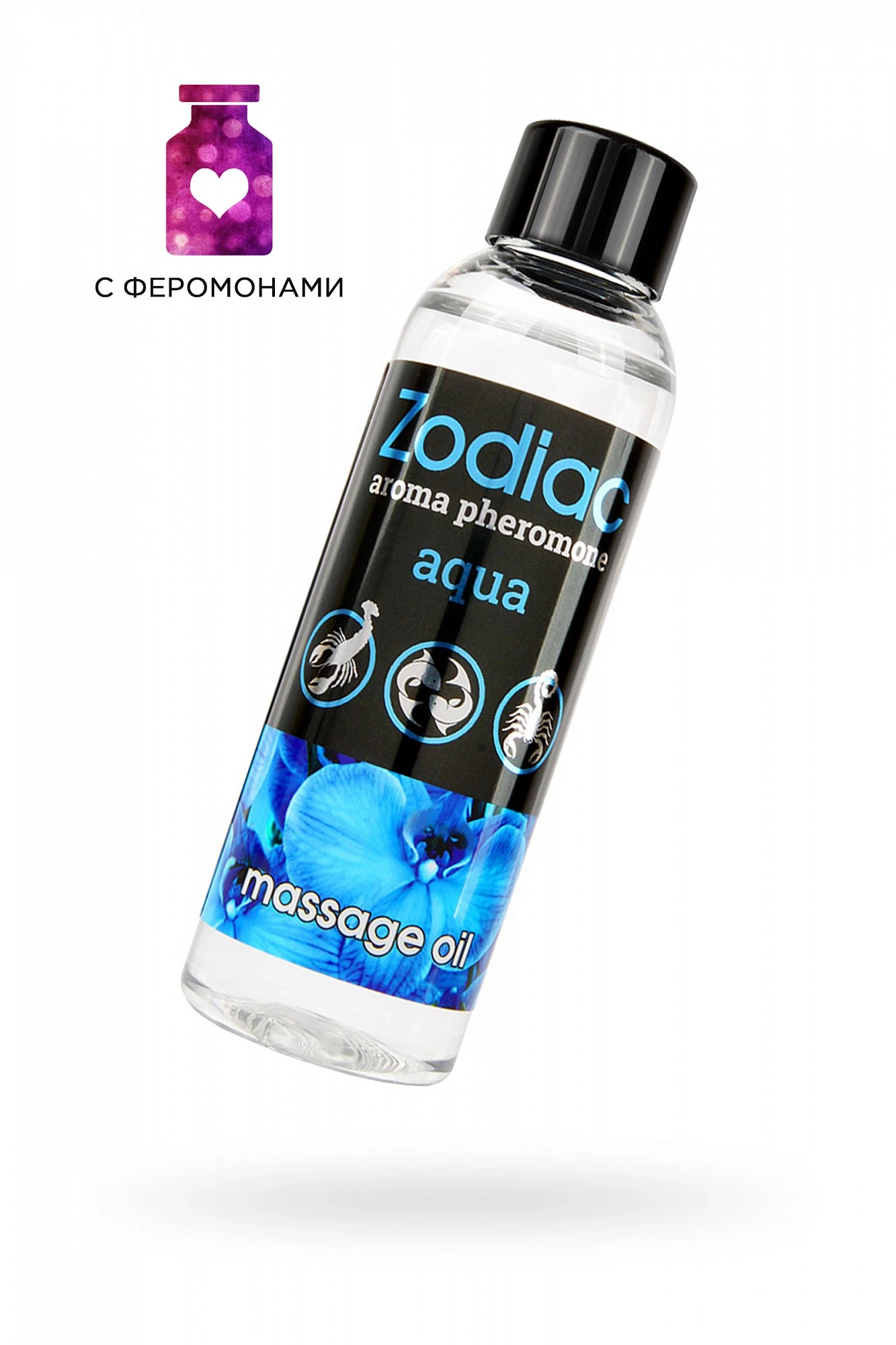 Массажное масло с феромонами Zodiac aqua. Аромат масла подобран специально для знаков зодиака стихии Воды. Он раскроет нежность и обольстительность водных знаков. Феромоны усилят притягательность партнёров. Масло обеспечивает равномерное и длительное скольжение, придаёт коже мягкость и шелковистость, делает её нежной, приятной для прикосновений.