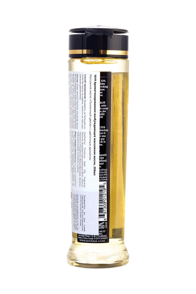 Натуральное массажное масло с упоительными ароматами идеально подходит для взаимного расслабляющего массажа, совмещённого с чувственными ласками. Масло легко скользит по коже, не оставляя жирной пленки. В отличие от большей части средств SHUNGA, ароматизированных вкусовыми ароматами, запах массажному маслу придают эфирные масла и ароматы, что делает его несъедобным. Изготовлено из натуральных масел холодного отжима. Не оставляет жирных пятен. Содержит Витамин Е (антиоксидант). Не закупоривает поры кожи. Не содержит минеральных или животных масел. Применение: налейте небольшое количество на ладонь и разогрейте масло в ладонях, чтобы оно приобрело температуру тела. При желании вы можете нагреть масло в горячей воде для более горячего массажа. Для полного массажа тела. Избегать контакта с интимными зонами. Обратите внимание на то, что данное массажное масло ароматизировано эфирными маслами и отдушками, а, следовательно, не съедобно. Не рекомендуется в качестве персонального лубриканта. Объем: 240 мл