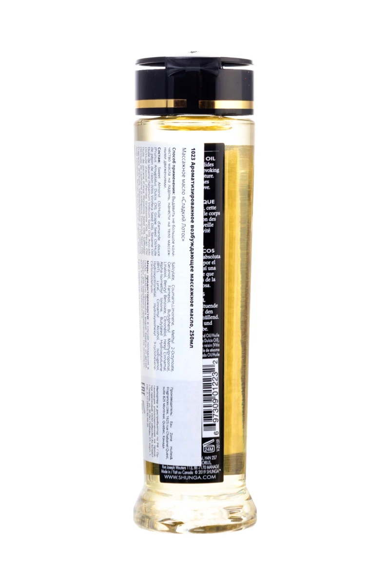 Натуральное массажное масло с упоительными ароматами идеально подходит для взаимного расслабляющего массажа, совмещённого с чувственными ласками. Масло легко скользит по коже, не оставляя жирной пленки. В отличие от большей части средств SHUNGA, ароматизированных вкусовыми ароматами, запах массажному маслу придают эфирные масла и ароматы, что делает его несъедобным. Изготовлено из натуральных масел холодного отжима. Не оставляет жирных пятен. Содержит Витамин Е (антиоксидант). Не закупоривает поры кожи. Не содержит минеральных или животных масел. Применение: налейте небольшое количество на ладонь и разогрейте масло в ладонях, чтобы оно приобрело температуру тела. При желании вы можете нагреть масло в горячей воде для более горячего массажа. Для полного массажа тела. Избегать контакта с интимными зонами. Обратите внимание на то, что данное массажное масло ароматизировано эфирными маслами и отдушками, а, следовательно, не съедобно. Не рекомендуется в качестве персонального лубриканта. Объем: 240 мл