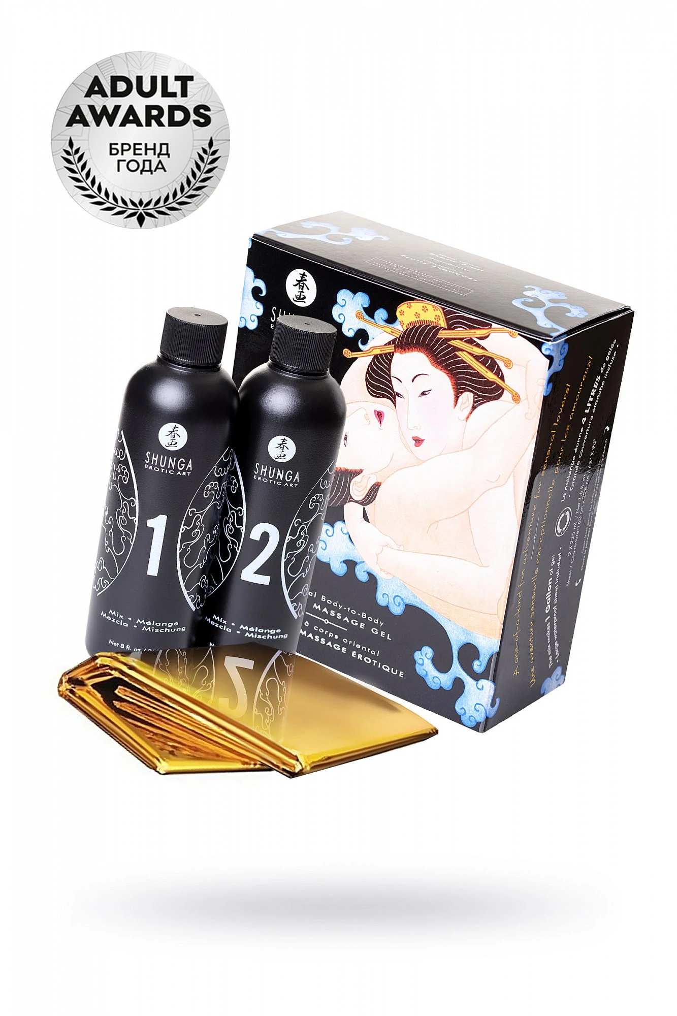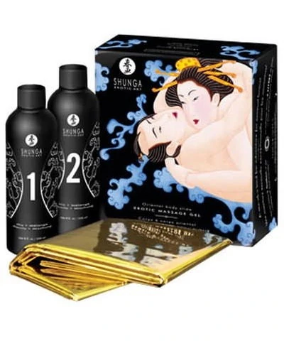 Самый пикантный эротический массаж — массаж телом по телу. И научиться делать его считается настоящим искусством. Ведь тела должны практически парить, скользить в полной невесомости, а не просто теряться друг о друга. Как сделать такой массаж? С помощью массажного геля Shunga Восточная схватка! Что такое массажный гель Shunga Восточная схватка? Это пьянящий аромат, возбуждающий эффект и нежные касания, которые превращаются с помощью геля в изысканные ласки. В комплект входит золотое воздухонепроницаемое покрывало, позволяющее сберечь от горячего эротического массажа любимые простыни.