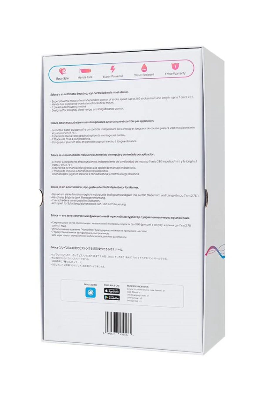 Вы готовы возвести вашу мастурбацию на новый уровень? Solace от Lovense инновационный автоматический фрикционный мужской мастурбатор, который сделает это за тебя. Для этой игрушки не важен опыт и наличие партнера соло игра, секс с партнером на расстоянии или виртуальная реальность возможно все! С этой умной игрушкой у вас есть возможность настроить мастурбацию в зависимости от настроения, предпочтений и ситуации. От чувственной и неторопливой, до интенсивной и агрессивной. Этот мощный мастурбатор способен достигать до 280 ударов в минуту с настраиваемой глубиной хода до 7 см. Испытайте полное погружение в виртуальную реальность. Синхронизация с видео, играми, стримами и другими игрушками позволит существенно расширить грани удовольствия. Solace соответствует движениям стримера или персонажа в игре, в то время пока вы просто получаете удовольствие. Работает с приложением Lovense Remote. Длина мастурбатора 29,4 см, диаметр 10 см. Длина внутреннего рукава 15,4 см, диаметр 2,5 см.