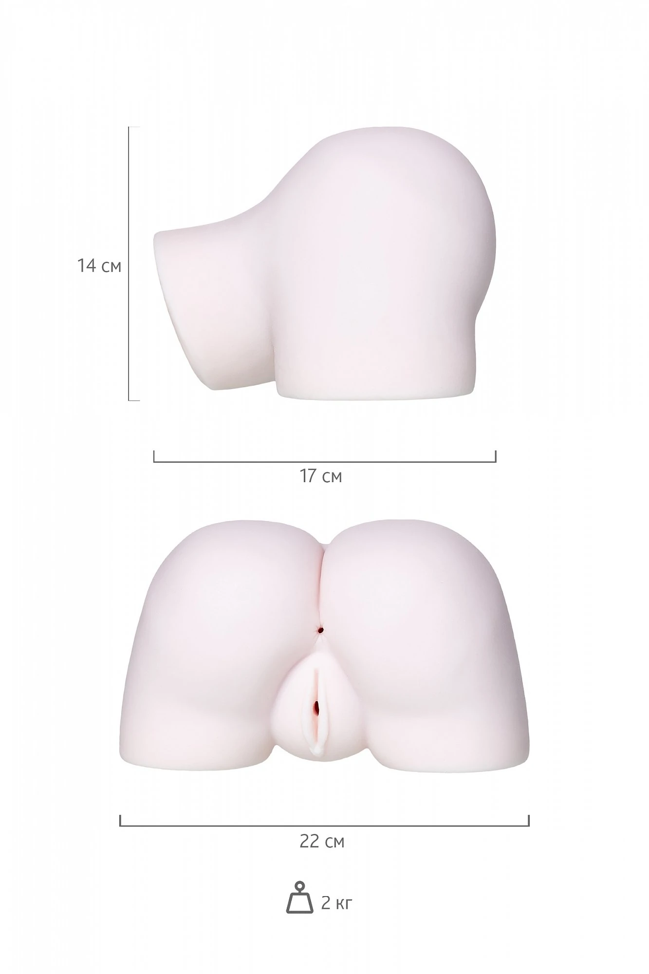 Реалистичный мастурбатор Momocchi подарит вам восхитительные ощущения и незабываемое удовольствие. Переднее отверстие, имитирующее анус, выполнено из более твердого материала, который плотно прилегает к вам и обхватывает ваш половой орган настойчиво и туго. Заднее отверстие, имитирующее вагину, более мягкое. Чередуйте проникновения, либо выбирайте по своему вкусу, хочется ли вам нежной стимуляции, либо более уверенной и плотной. Размер: длина 22 см, диаметр 17 см. Цвет телесный. Для более комфортного использования рекомендуем приобрести смазку на водной основе и очищающий спрей Clear Toy 100 мл для обработки изделия.