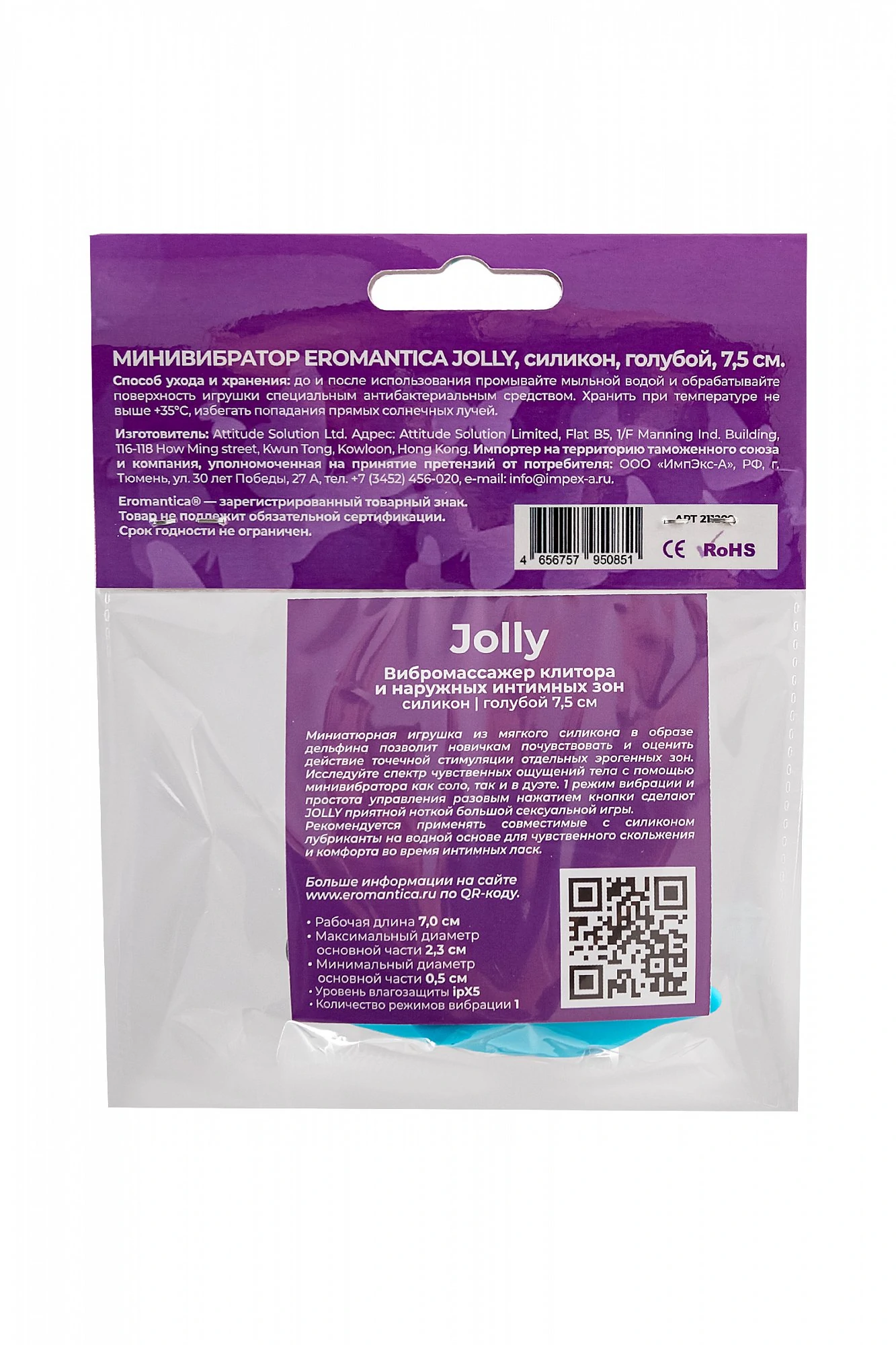 Миниатюрная игрушка из мягкого силикона в образе дельфина позволит новичкам почувствовать и оценить действие точечной стимуляции отдельных эрогенных зон. Исследуйте спектр чувственных ощущений тела с помощью мини вибратора как соло, так и в дуэте. 1 режим вибрации и простота использования разовым нажатием кнопки сделают Jolly приятной ноткой большой сексуальной игры. Размер: длина 7 см, диаметр 2,3 см. Рекомендуется применять совместимые с силиконом лубриканты на водной основе для чувственного скольжения и комфорта во время интимных ласк.