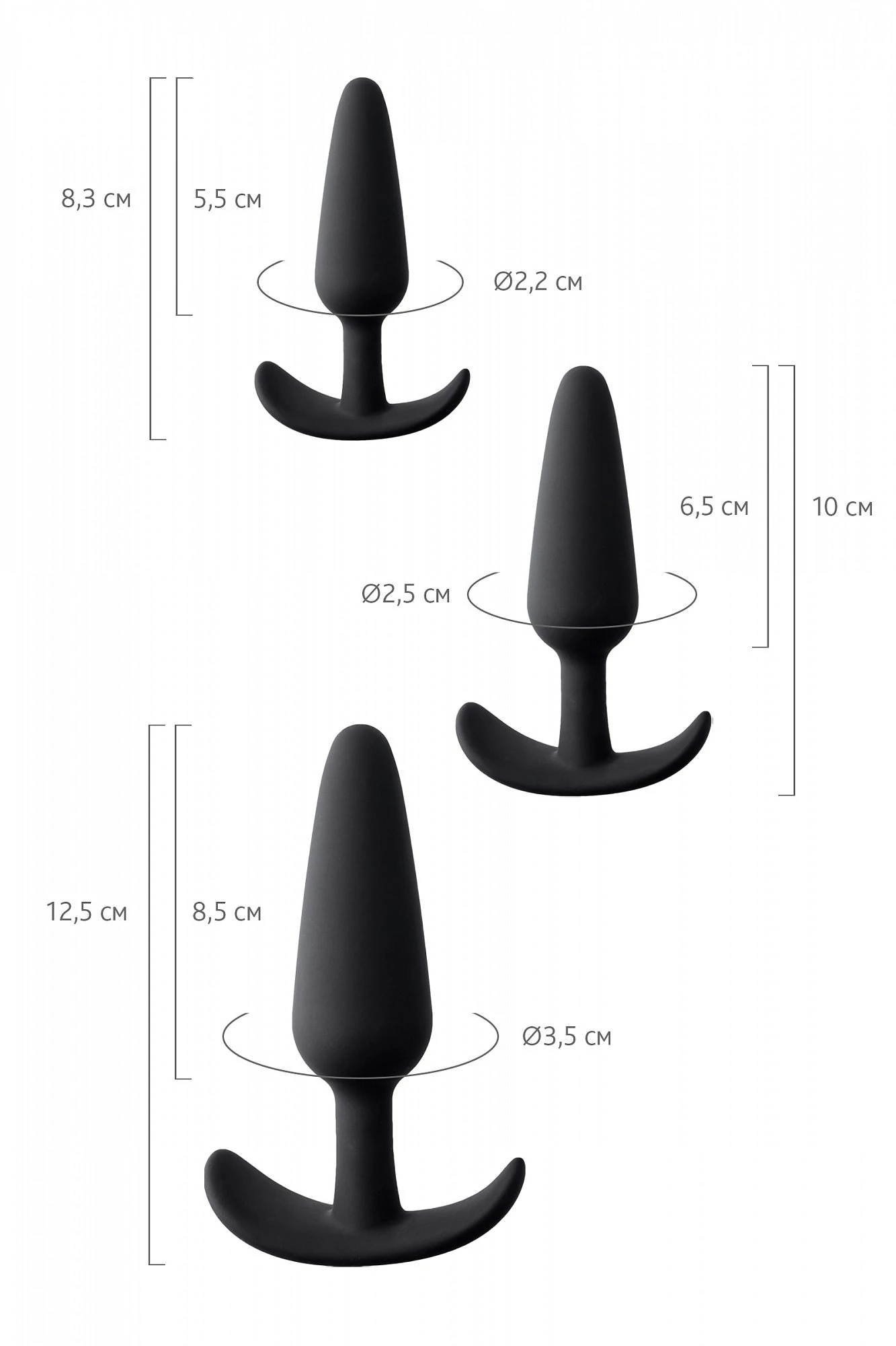 Это набор идеален для тех, кто только приобщается к радостям анальных игр. Начинать можно с самой маленькой втулки, постепенно расширяя свои возможности. Конусообразная форма удобна для введения, широкое основание не даст проскользнуть игрушке внутрь. Размеры: Втулка №1 общая длина 8,3 см, рабочая длина 5,5 см, диаметр 2,2 см; Втулка №2 общая длина 10 см, рабочая длина 6,5 см, диаметр 2,5 см; Втулка №3 общая длина 12,5 см, рабочая длина 8,5 см, диаметр 3,2 см. Для более комфортного использования рекомендуем приобрести анальную смазку на водной основе и очищающий спрей Clear Toy 100 мл для обработки изделия.