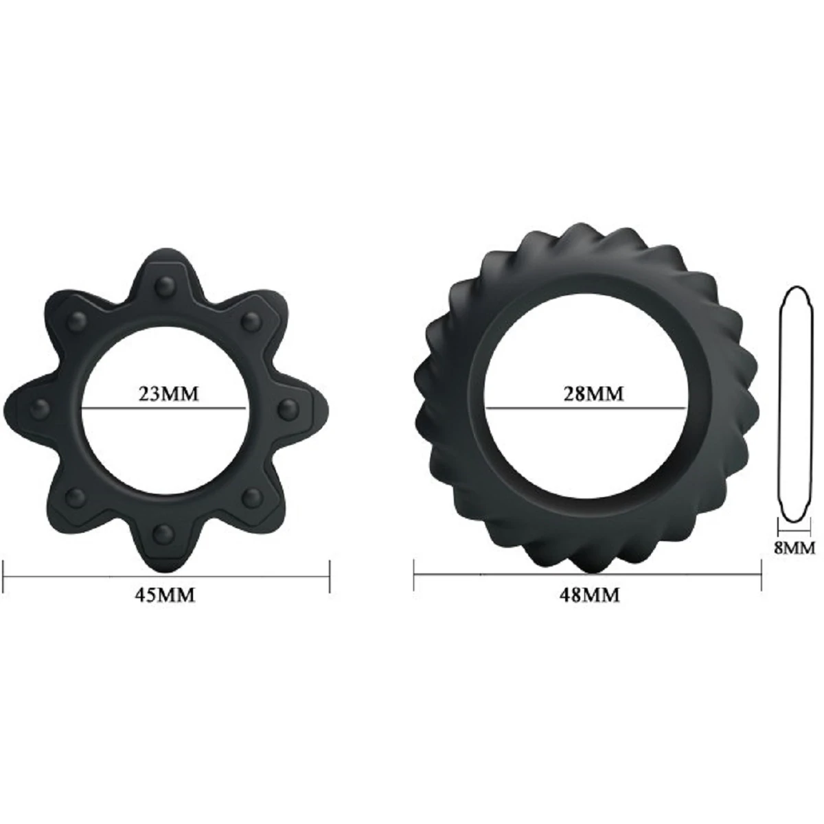 Выглядите соответствующе и дайте ей то, что она хочет, с этим фантастическим набором черных колец для члена. В каждой упаковке два разных дизайна, очень эластичные. Носите по одному или все вместе для достижения максимальной производительности. Изготовлен из силикона, безопасного для кожи, поскольку не содержит латекса и фталатов. Высококачественные эрекционные кольца для мощной и продолжительной эрекции - этот набор прослужит вам долгие годы. Размеры: внешний диаметр 4,5 и 4,8 см, толщина 0,8 см, внутренний диаметр 2,3 и 2,8 см. Рекомендуемое время единовременного использования – до 30 минут. Цвет: черный. Для более комфортного использования рекомендуем приобрести смазку на водной основе и очищающий спрей Clear Toy 100 мл для обработки изделия.