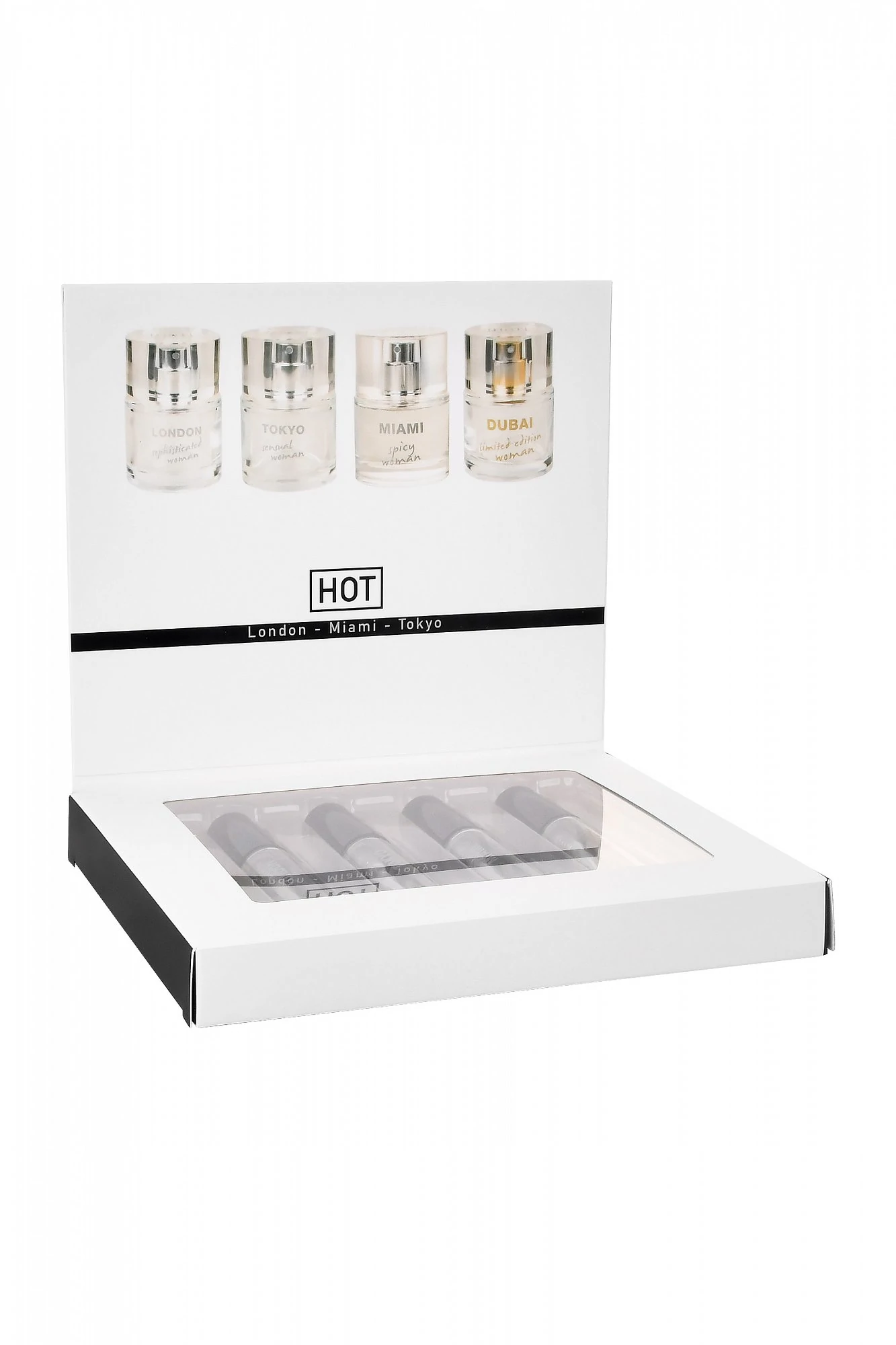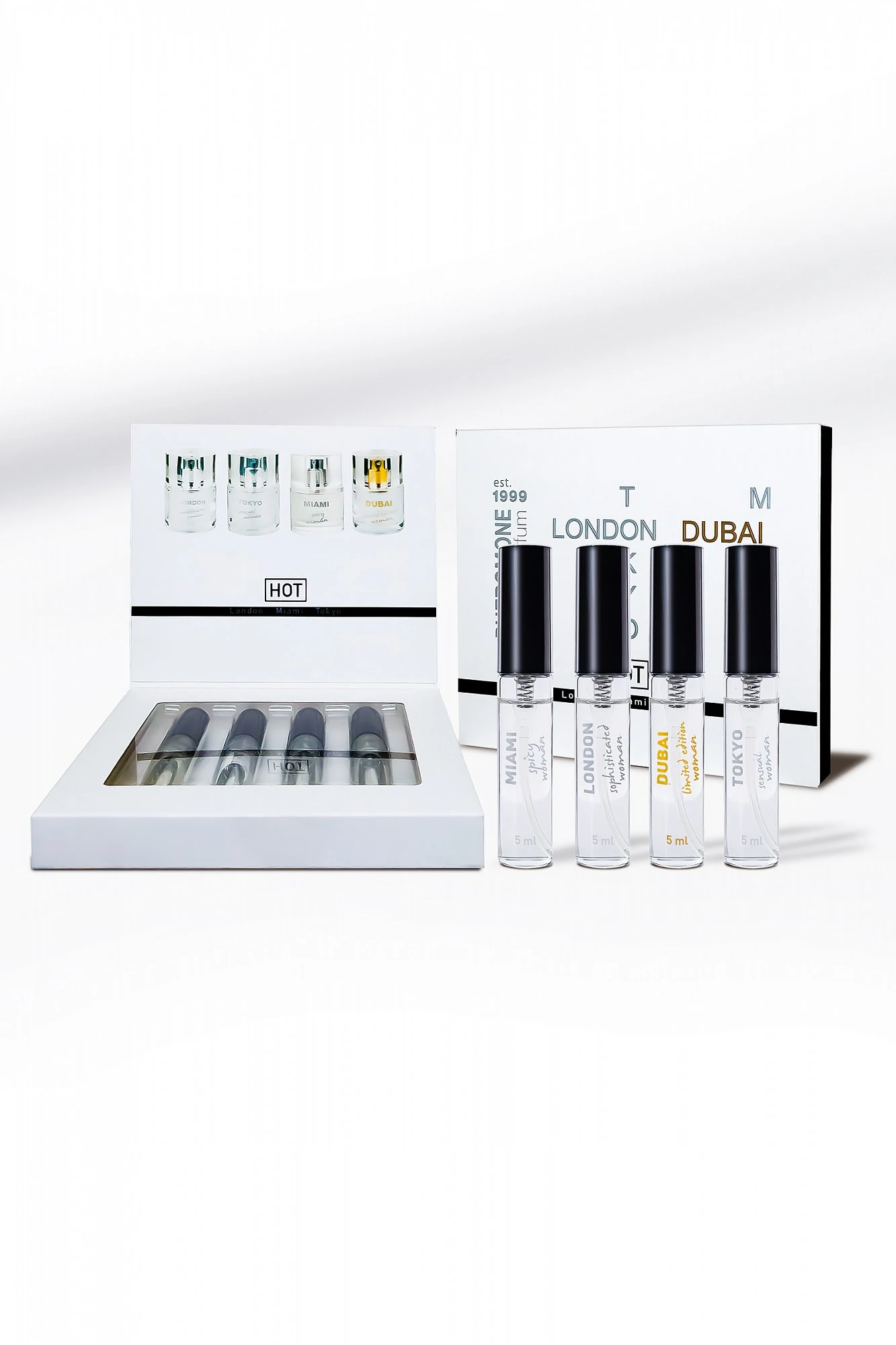 Для женщин, которые ценят свою уникальность, уверены в своей привлекательности и хотят подчеркнуть свою природную магнетичность, набор HOT с феромонами станет настоящим секретом успеха. Этот эксклюзивный сет из четырех ароматов идеальный выбор для тех, кто стремится завоевывать сердца и оставлять незабываемое впечатление. Будь то для вас или в качестве подарка, который подчеркивает индивидуальность, этот набор станет воплощением элегантности и страсти. Феромоны в каждом из ароматов пробуждают скрытые желания, усиливая естественную привлекательность и притягательность. А компактные флаконы удобно носить с собой, позволяя менять образ и создавать желаемую атмосферу в любое мгновение. Лондон элегантный и утонченный, с яркими нотами ежевики, ванили и мускуса, дополненными цветочным акцентом розы и фиалки. Этот аромат воплощение соблазна и силы, которые невозможно игнорировать. Майами яркий и сексуальный, как теплое побережье.
