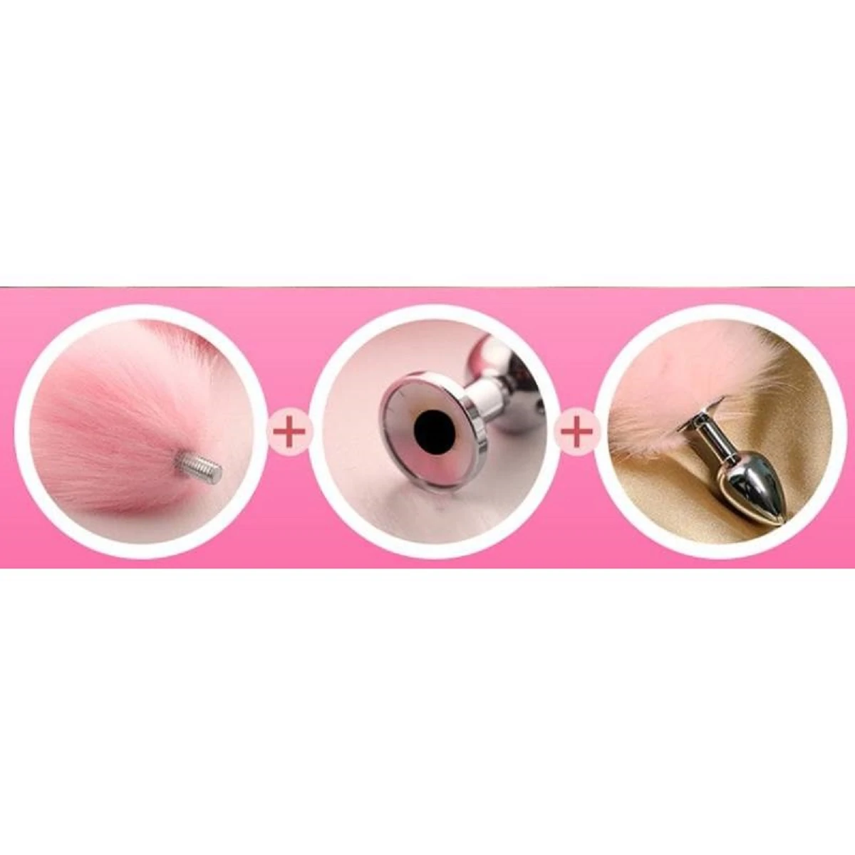 Эротический набор для ролевых игр. В набор входит: Ободок с пушистыми ушками. Розовый разборный хвостик 40 см в длину с небольшой металлической втулкой серебристого цвета диаметром 2,6 см. Ошейник-чокер с украшением в виде металлического сердечка (размер чокера регулируется за счет застежек-кнопок). Зажимы на соски с украшениями-бубенчиками. Цвет розовый.