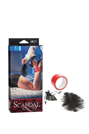 Набор игровой металлические шарики, скотч - лента, перо, Scandal Red Room Kit из чувственной премиум коллекции эротических аксессуаров Scandal. Эластичной скотч - лентой зафиксируйте руки и ноги, ей же завяжите глаза. Мяким пером проведите по эрогенным зонам, разжигая страсть и вставляйте по одному - металлические шарики. Экспериментируйте и воплощайте сексуальные фантазии. Дизайнерский нейлоновый мешочек для хранения шариков. Размер скотч - лента: длина - 18,25 м; ширина - 4,5 см. Размер вагинальных шариков: диаметр - 2 см. Материал: ПВХ, нержавеющая сталь, страусиное перо. Цвет: Красный, чёрный, серебристый.