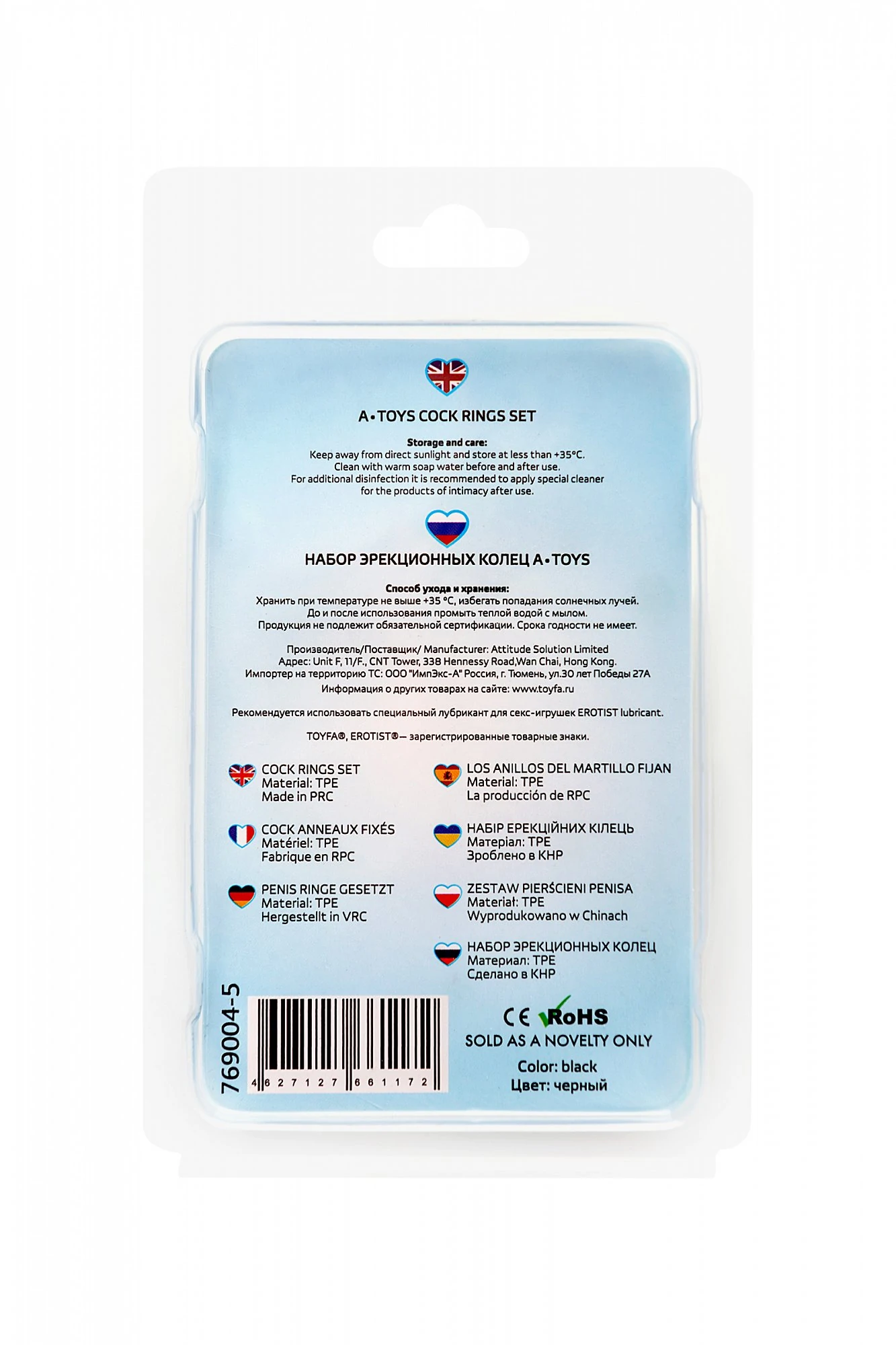 Эрекционные силиконовые кольца A-Toys для усиления эрекции и продления полового акта.Кольцо хорошо растягивается, но плотно облегает основание пениса. При использовании кольца мужской оргазм будет более ярким. Диаметр 3 см. Цвет черный. Для более комфортного использования рекомендуем приобрести смазку на водной основе и очищающий спрей Clear Toy 100 мл для обработки изделия.