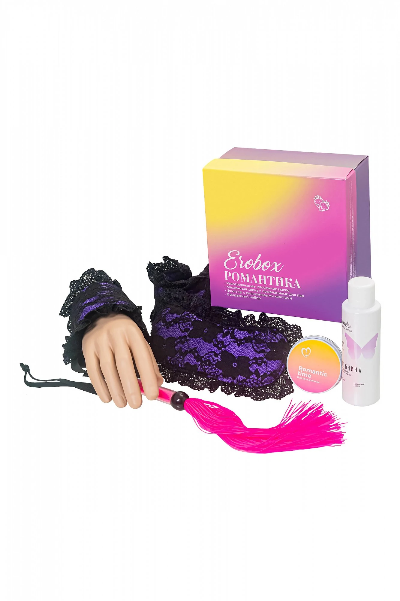 ЭРОбокс Романтика - это способ сообщить друг другу о ценности отношений и подчеркнуть особенную важность партнера в привычных буднях! Зажгите массажную свечу Romantic Time и через несколько минут узнайте, какое послание в вашу жизнь отправила Вселенная. 30 различных идей для пар на дне баночки подскажут, как порадовать друг друга в обычном дне. Пока аромат свечи наполняет пространство, повяжи мягкие аксессуары бондажного набора на глаза и руки и создай пленяющий образ для пылкого вечера. Соблазнительное кружево маски и наручников в сочетании с глубоким фиолетовым цветом стильно смотрится на теле и рождает чувственные фантазийные сценарии для двоих. Налейте несколько капель масла со вкусом клубники на эрогенные зоны друг друга, нежными движениями распределите по поверхности кожи и ощутите приятный согревающий эффект поцелуев от оральных ласк. Используйте флоггер с силиконовыми хвостами для любовных игр и добавьте приятных ощущений в интимные ласки.