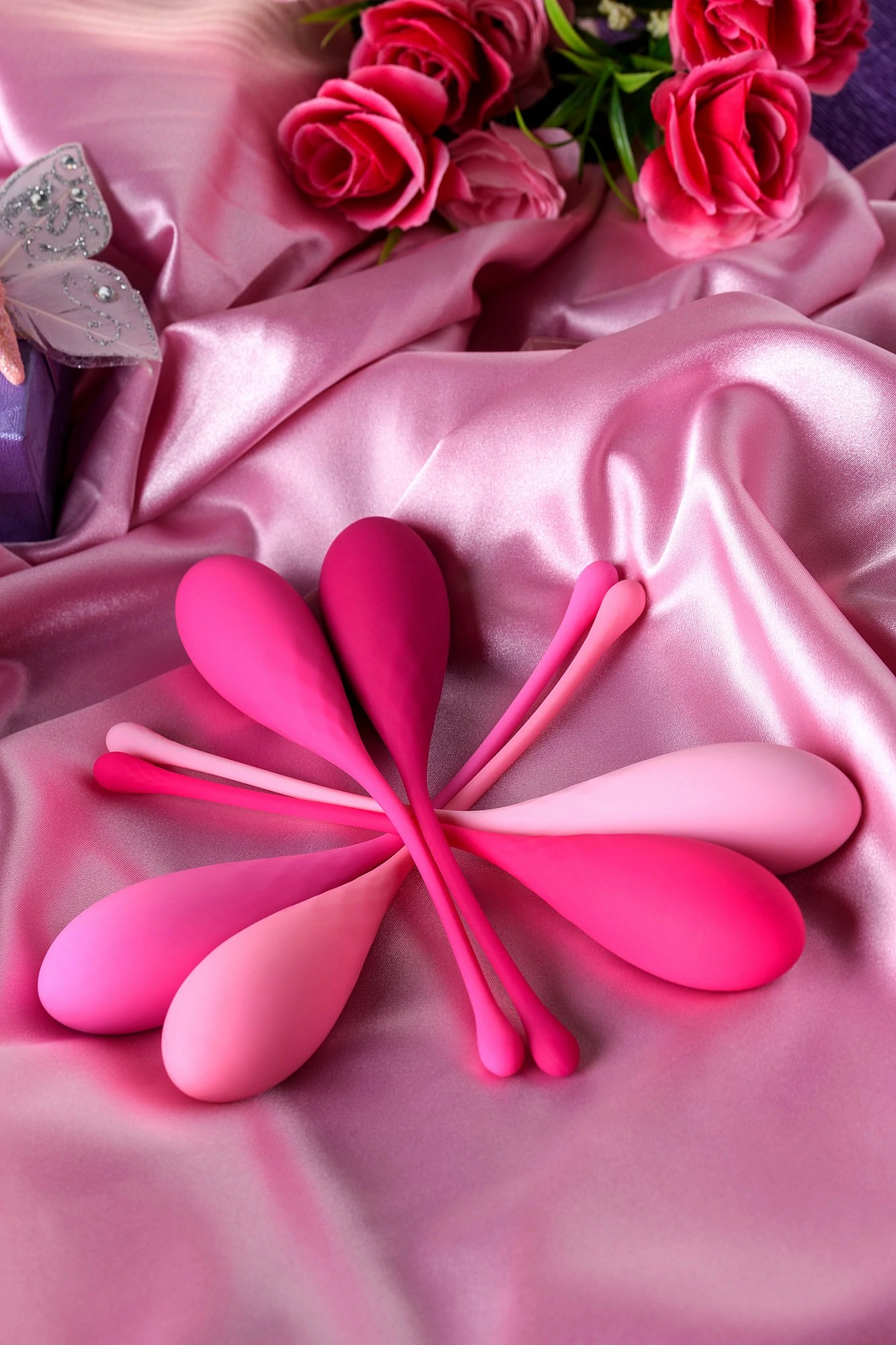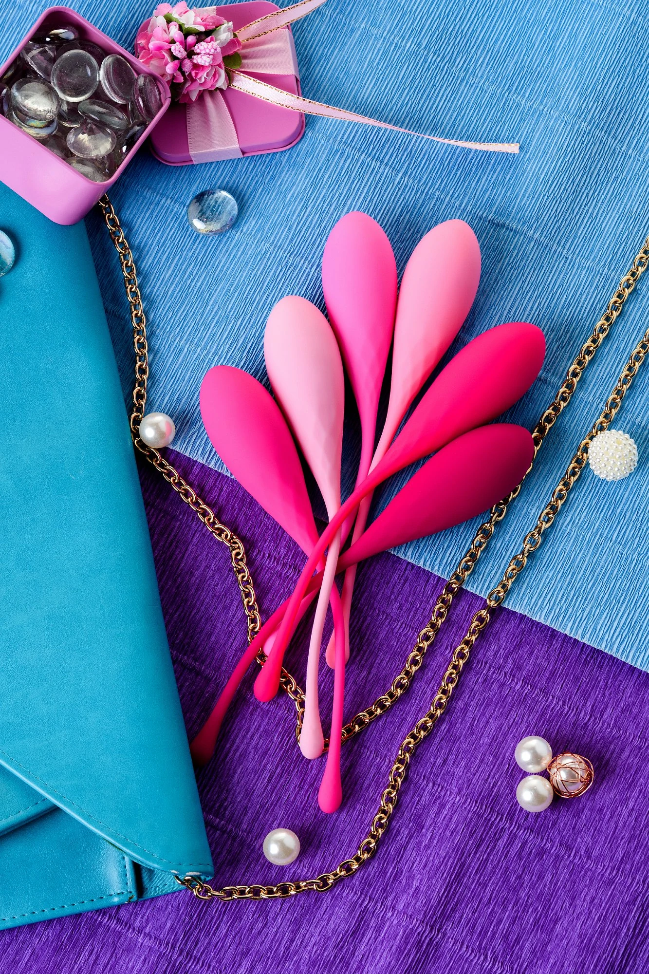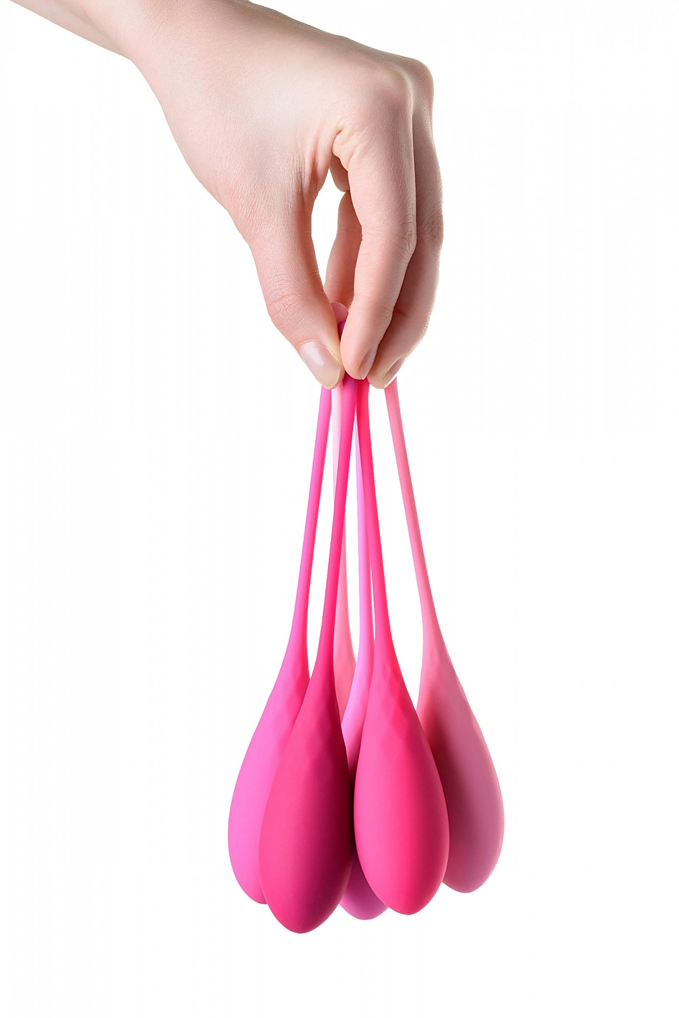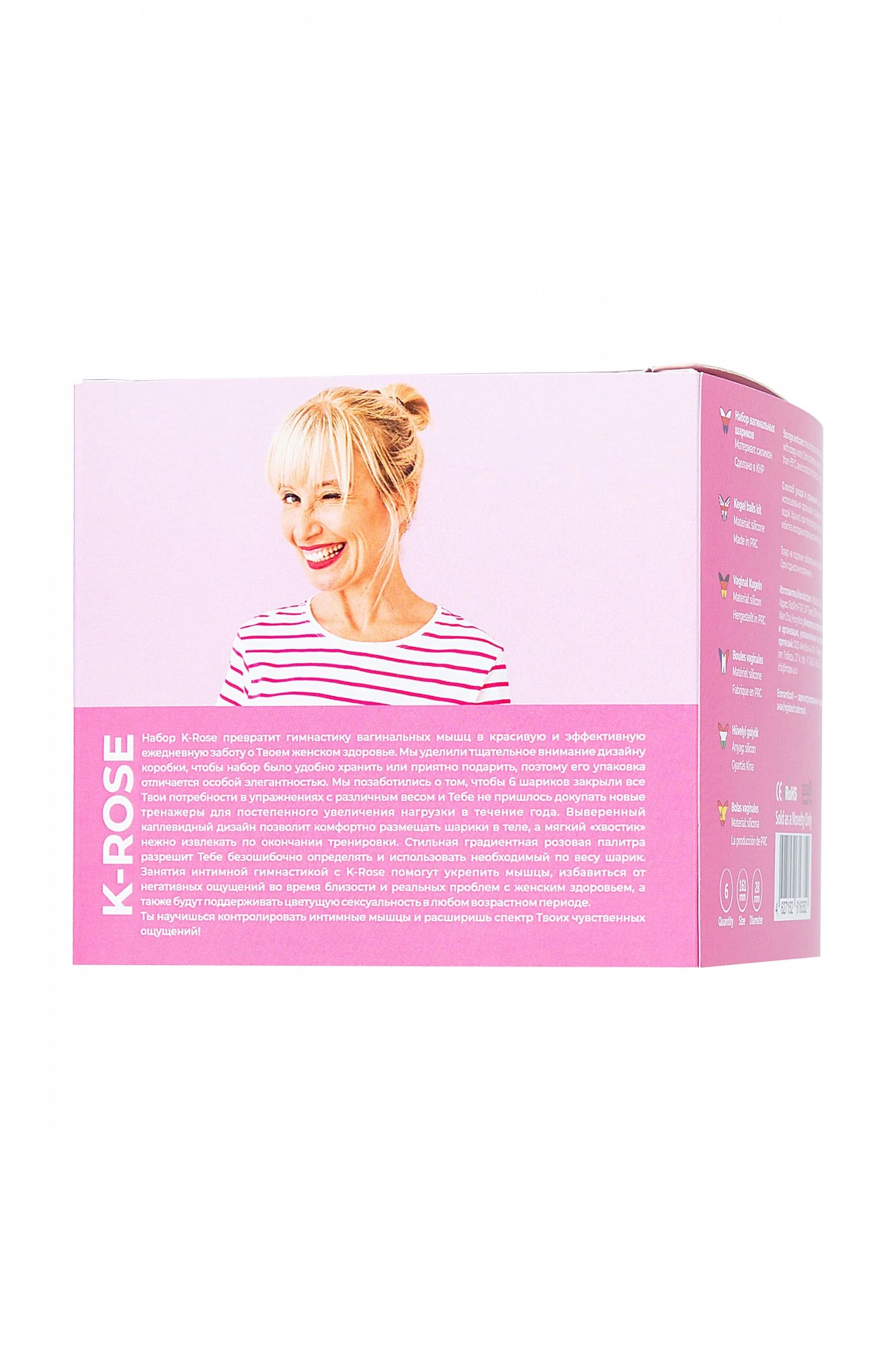 Набор K-Rose превратит гимнастику вагинальных мышц в красивую и эффективную ежедневную заботу о твоём женском здоровье. Мы позаботились о том, чтобы 6 шариков закрыли все Твои потребности в упражнениях с различным весом и Тебе не пришлось докупать новые тренажёры для постепенного увеличения нагрузки в течение года. Выверенный каплевидный дизайн позволит комфортно размещать шарики в теле, а мягкий хвостик нежно извлекать по окончании тренировки. Стильная градиентная розовая палитра разрешит Тебе безошибочно определять и использовать необходимый по весу шарик. Занятия интимной гимнастикой с K-Rose помогут укрепить мышцы, избавиться от негативных ощущений во время близости и реальных проблем с женским здоровьем, а также будут поддерживать цветущую сексуальность в любом возрастном периоде. Ты научишься контролировать интимные мышцы и расширишь спектр Твоих чувственных ощущений! В наборе 6 вариантов веса для увеличения нагрузки: 50 г,65 г,80 г,95 г,110 г,130 г.