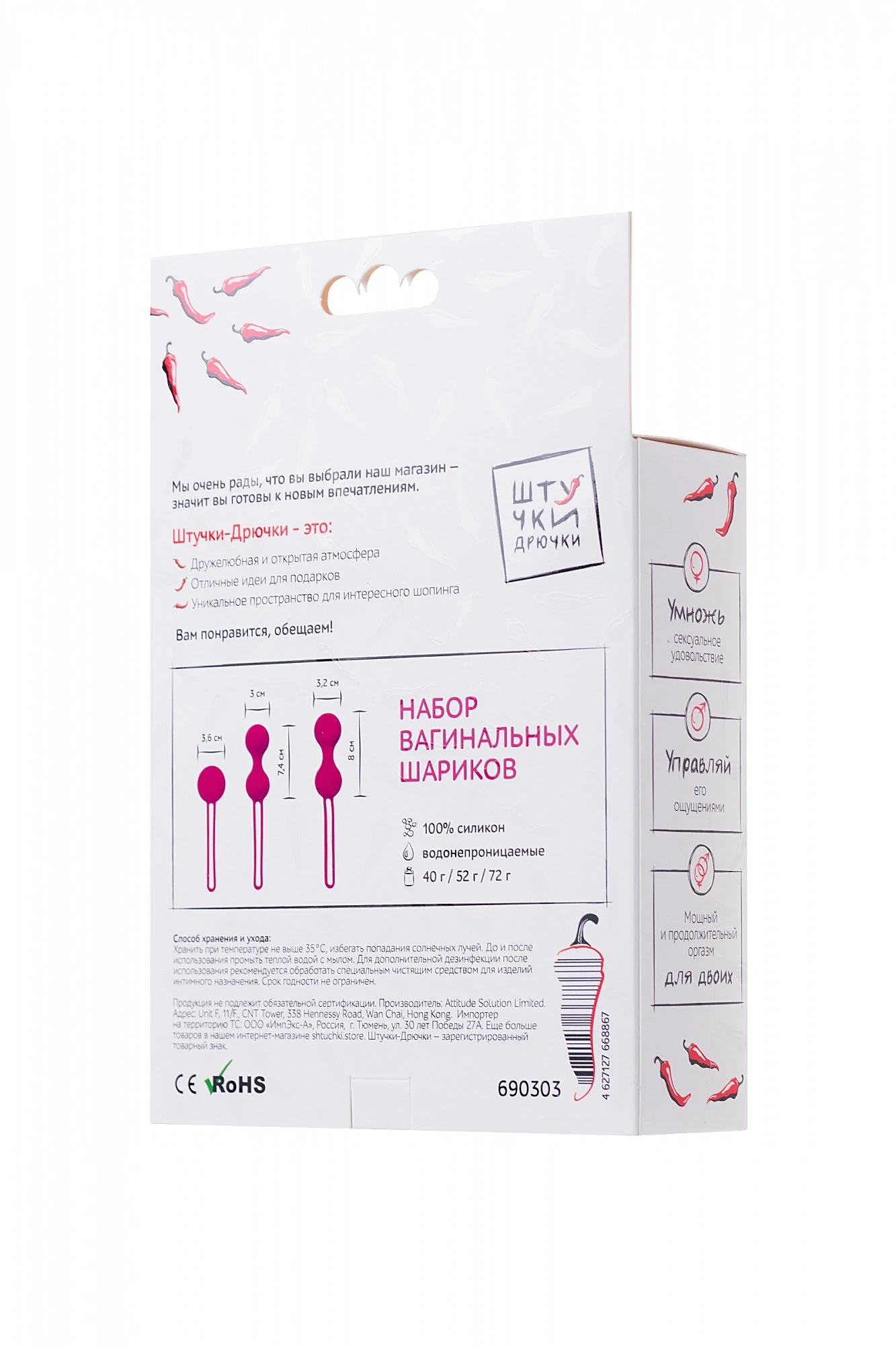 Набор вагинальных шариков со смещенным центром тяжести выполнен из нетоксичного и гипоаллергенного 100% силикона высокого качества. На конце есть петля, позволяющая легко вводить и извлекать игрушку. Водонепроницаемы и просты в уходе. Идеальный способ попрактиковать упражнения Кегеля. Благодаря шарикам разной тяжести вы можете начать тренировки, даже если никогда этого не делали, постепенно увеличивая нагрузку. Вагинальные шарики укрепляют ЛК-мышцы, улучшают тонус и упругость мышц влагалища, а также помогают увеличить продолжительность и интенсивность оргазмов.Просто нанесите ваш любимый лубрикант и вставьте шарики. Они абсолютно бесшумны, а петлю для извлечения легко спрятать в нижнем белье. Рекомендуется использовать игрушку не более 2 часов, начиная с 20-30 минут ежедневно. Размеры: длина 16,5 см, диаметр 3,2 см, длина 15,5 см, диаметр 3 см, длина 12 см, диаметр 3,6 см.