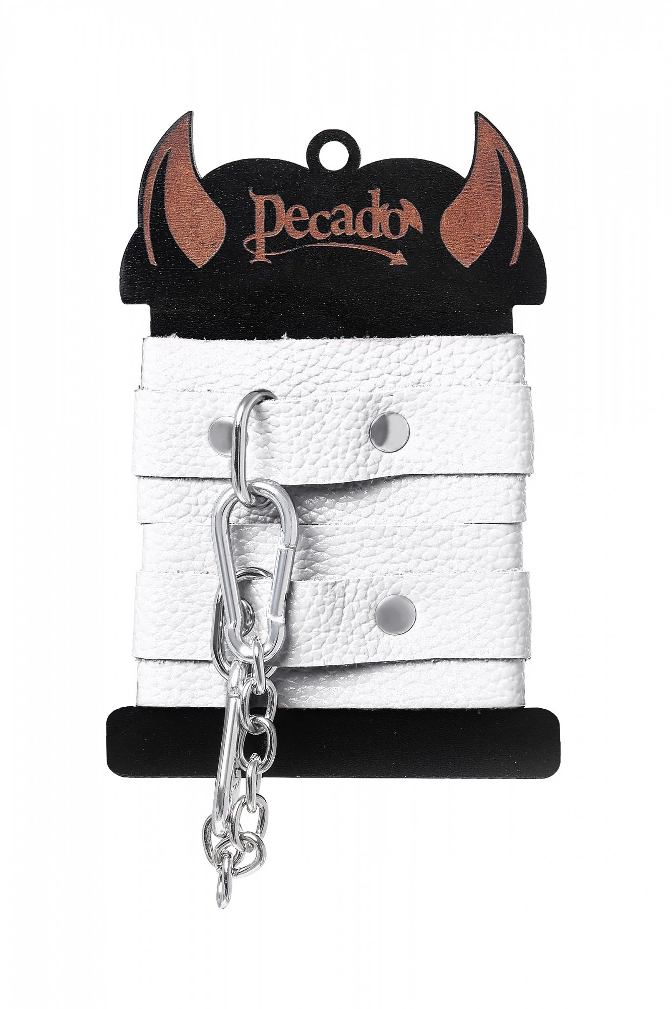 Эти наручники-браслеты – пикантная смесь брутальности и лаконичного дизайна. Данная модель - не просто девайс для ролевых игр, но и стильное украшение на руку. Наручники изготовлены из экологичной, прочной, натуральной кожи. Материал износостойкий, тактильно приятный. Благодаря качественной металлофурнитуре, аксессуар надежно фиксируется. Не расстегивается при активном использовании в процессе игр. Манжеты соединены между собой с помощью двух карабинов и короткой цепочки. При необходимости, можно использовать как более длинные цепи, так и другие аксессуары. Подходит для пар, которые только познают азы БДСМ-культуры, а также более опытным ценителям жестких игр. Погрузитесь в мир особых чувств и желаний! Натуральная кожа. Ручная работа. Износостойкий, тактильно приятный материал. Надежная высококачественная фурнитура. Универсальный размер. Длина манжет 15 см, ширина манжет 4 см, длина сцепки 14 см.