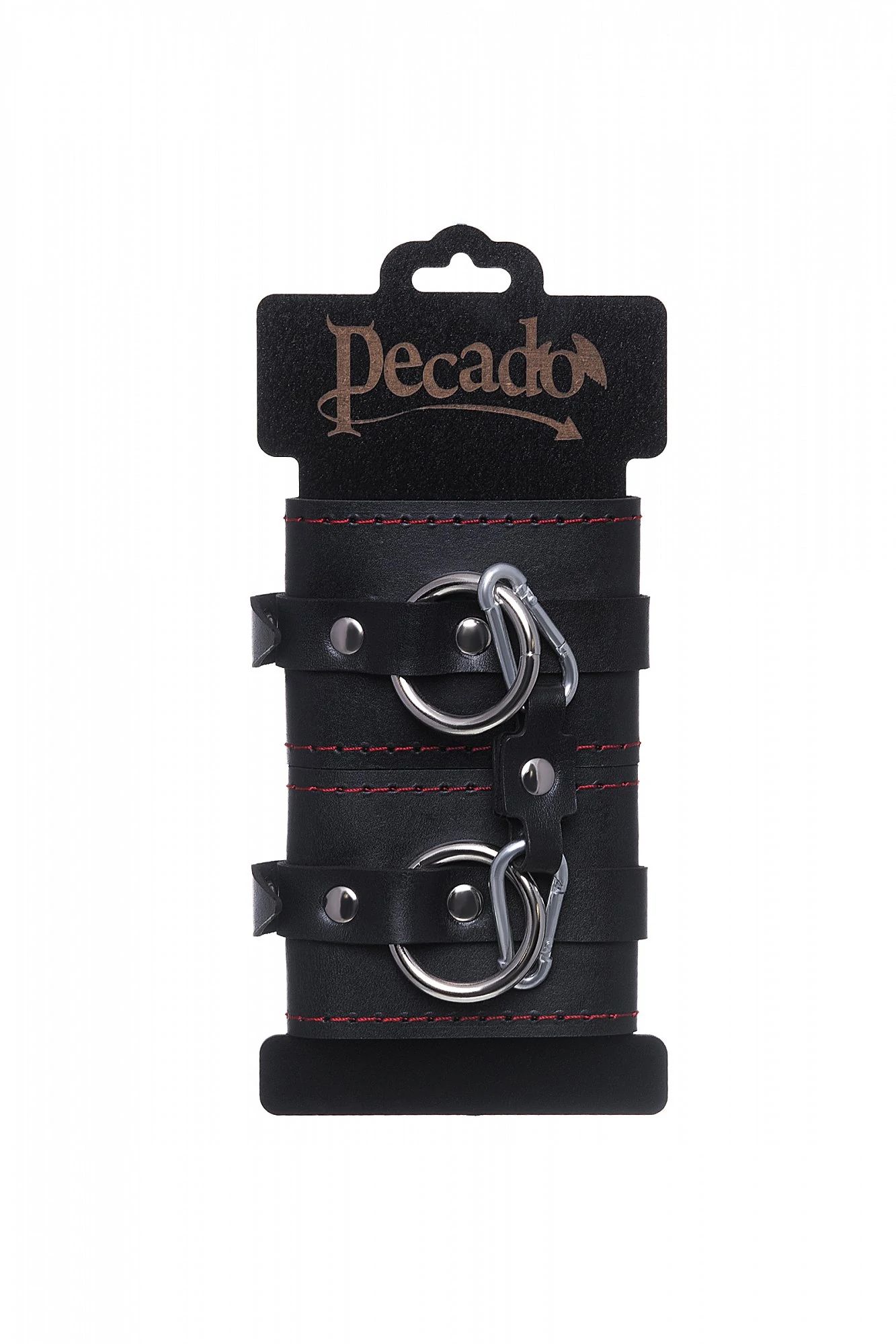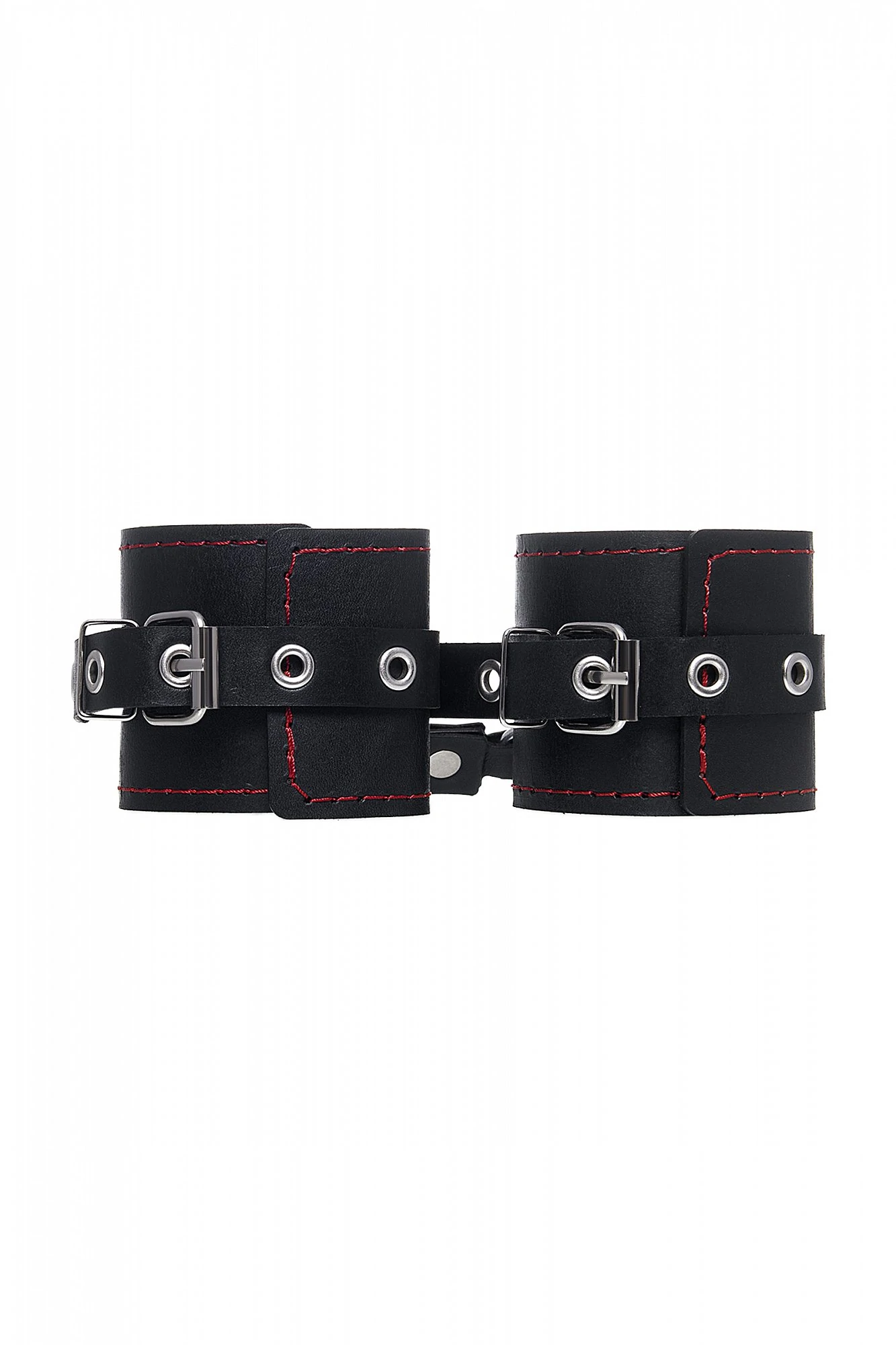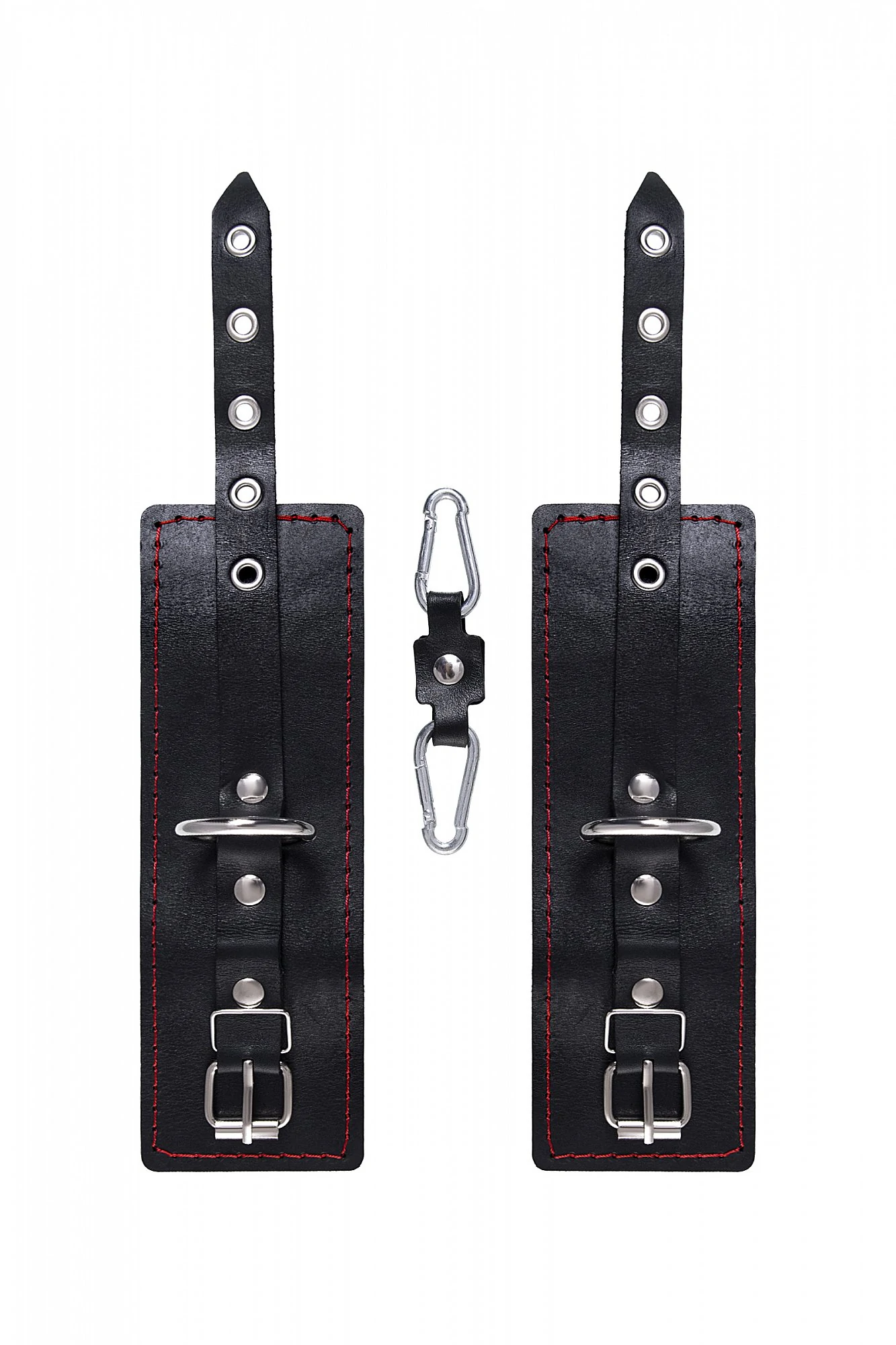 Однослойные кожаные наручники с контрастной строчкой красного цвета могут стать стильным аксессуаром на «свободных» руках, но могут послужить вашим целям и фантазиям по своему прямому назначению. Наличие двух карабинов и колец позволяет использовать изделие как раздельно – аксессуар-манжеты, так и как наручники для фиксации. К широким металлическим кольцам также можно присоединить и другие аксессуары при помощи карабинов. Благодаря универсальному размеру наручники могут использоваться и мужчинами, и женщинами. Размер легко регулируется с помощью металлических пряжек, органично вписывающихся в общий стиль. Материал: натуральная кожа. Цвет черный. Размер: ширина манжет 6,5 см, длина манжет 20 см, длина сцепки 11 см.