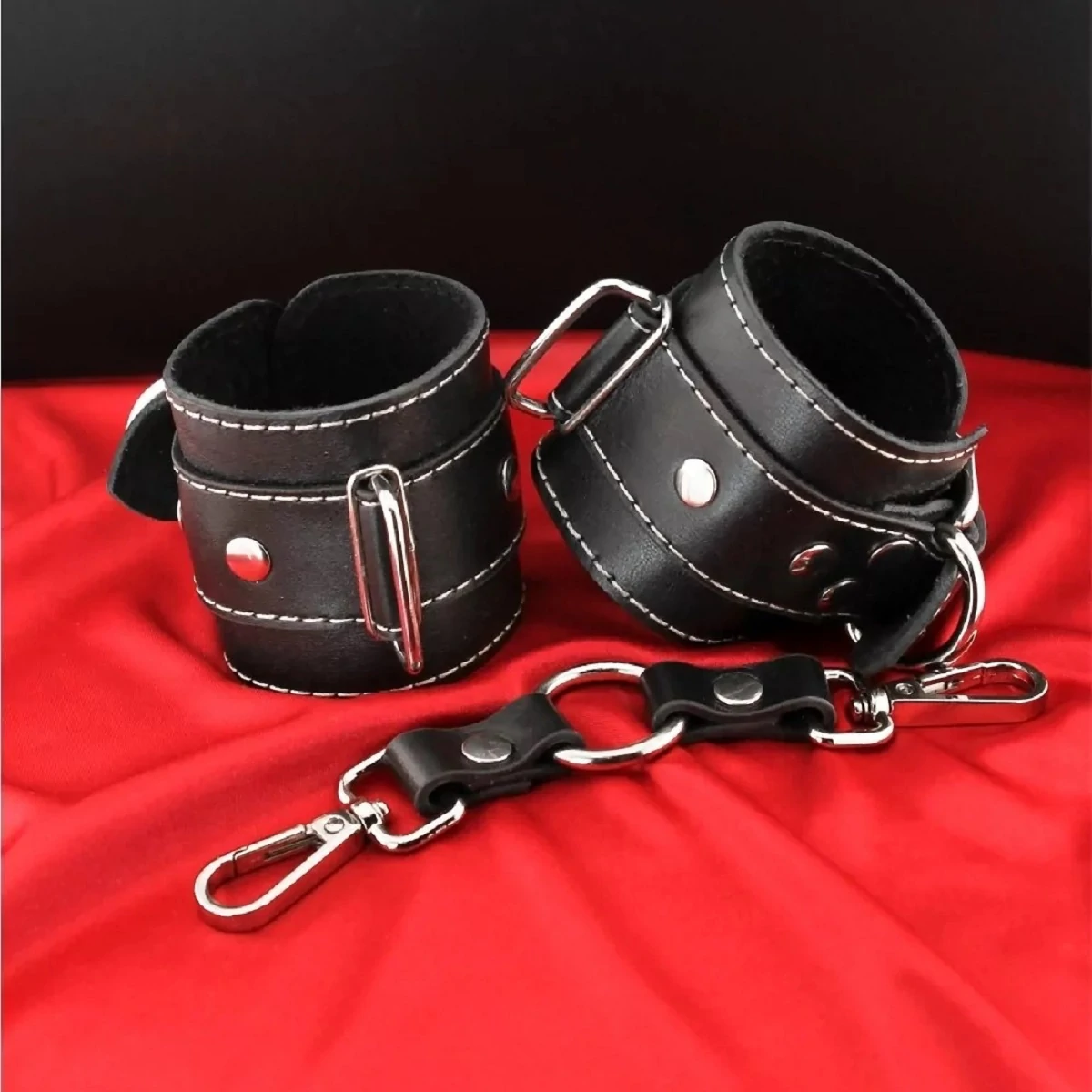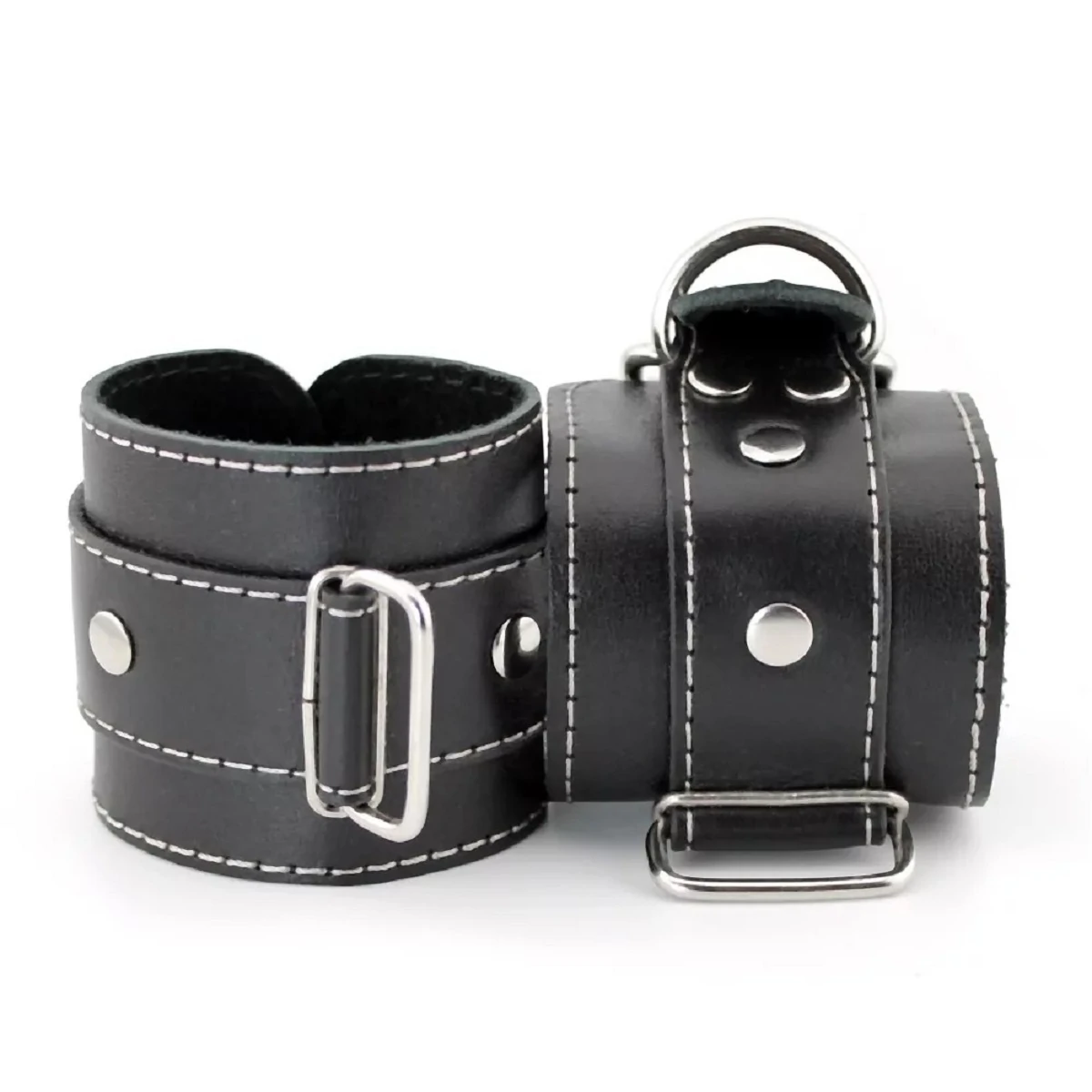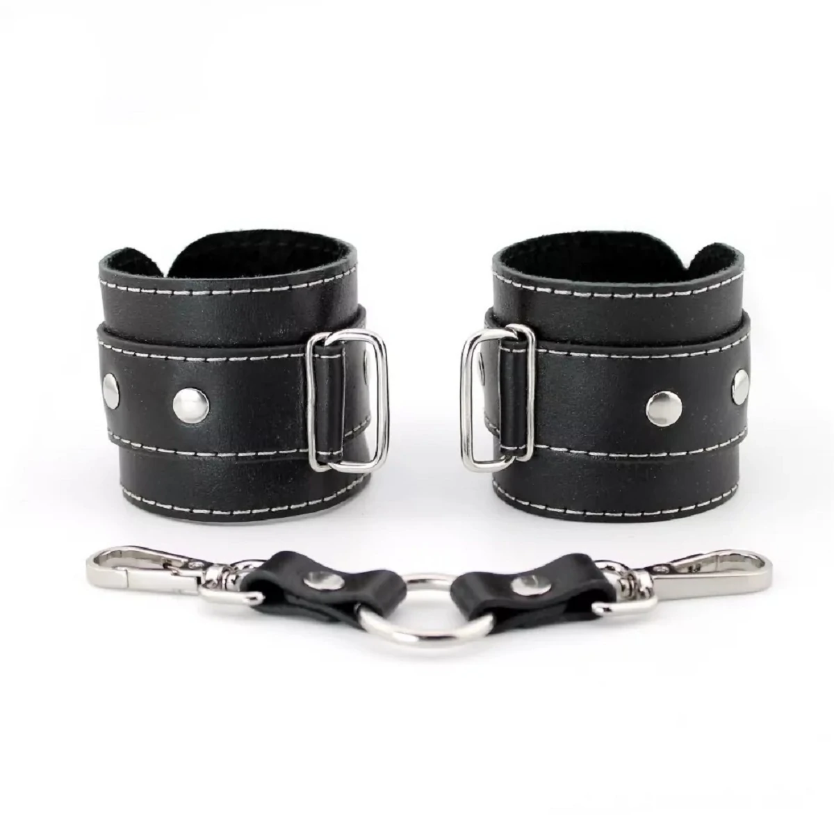 Интимные наручники кожаные с одним кольцом - это идеальный аксессуар для взрослых игр в стиле БДСМ. Изготовленные из натуральной кожи, они обеспечат вам не только надежное крепление, но и приятные тактильные ощущения. Толщина кожи составляет 2.2-2.5 мм, а ширина наручников - 60 мм, что делает их прочными и долговечными.Эти наручники легко регулируются по охвату кисти от 14 см до 19 см, что позволяет подобрать идеальный размер для каждого. Крепкие металлические карабины обеспечивают надежное закрепление, а кожаная сцепка на карабинах гарантирует 100% погружение в мир страсти и подчинения. Не упустите возможность добавить в свою интимную жизнь элементы контроля, подчинения и страсти с кожаными наручниками. Создайте новые эмоции и наслаждайтесь яркими взрослыми играми вместе с вашим партнером. Размер: ширина наручников 6 см, длина наручников 24 см. Наручники изготовлены из натуральной кожи. Цвет черный.