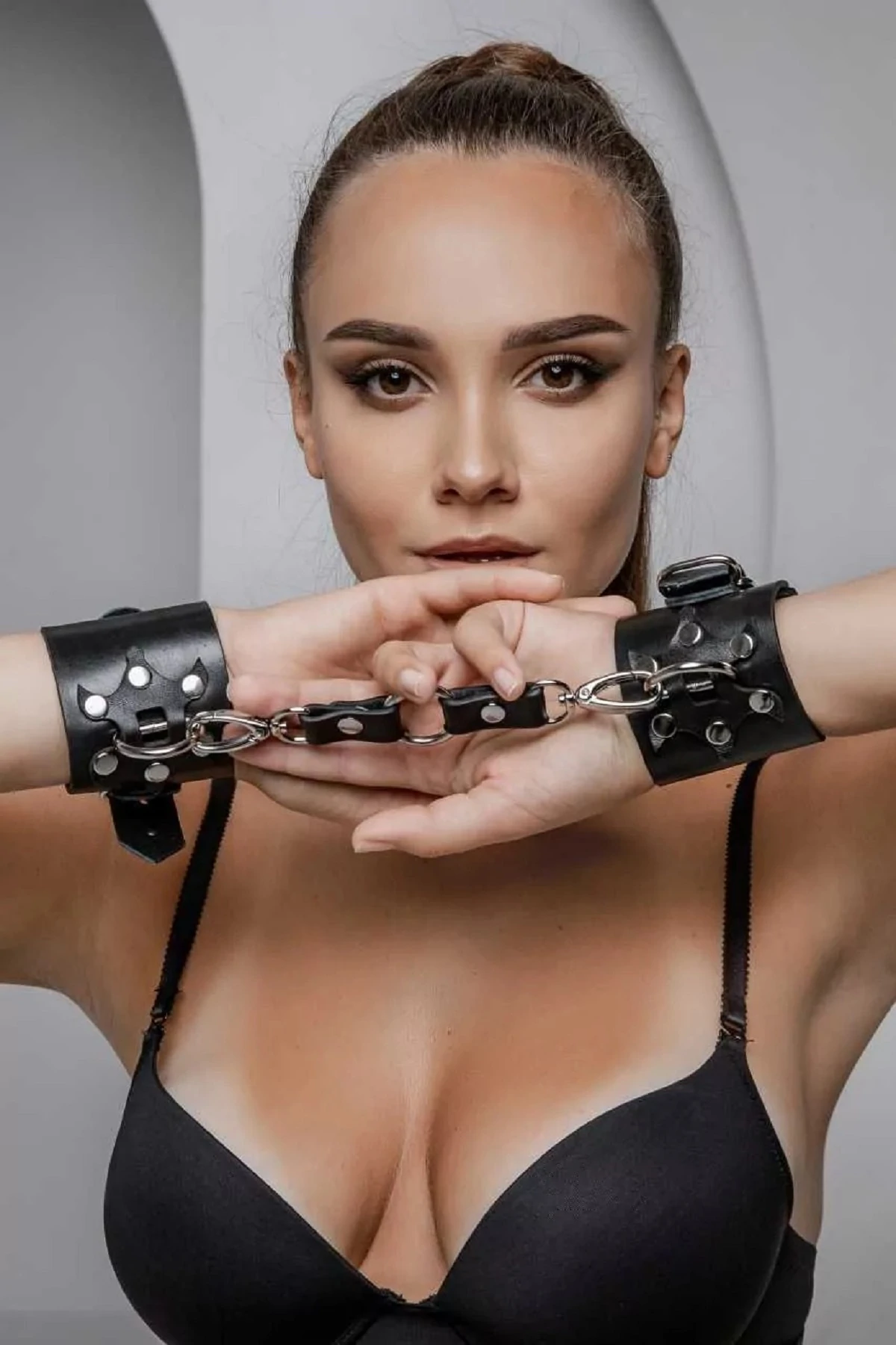 Наручники с элементом трезубца - это универсальный аксессуар для взрослых, который подойдет для вас обоих. Зафиксируйте руки партнера, прислушивайтесь к эмоциям, ловите ощущения, наслаждайтесь сами и дарите наслаждение. Наручники станут отличным приобретением в коллекции бдсм-игрушек. Отлично гармонируют с чокерами, провоцируют с гартерами, портупеями и масками. Благодаря отличному качеству кожаного изделия, наручники не доставляют дискомфорта. Идеальная посадка на запястьях обеспечивается благодаря регулирующейся застежки, регулировка по охвату кисти от 16 см. до 20 см. Толщина кожи 2.2.-2.5 мм. Не упустите возможность добавить в свою интимную жизнь элементы контроля, подчинения и страсти с кожаными наручниками. Создайте новые эмоции и наслаждайтесь яркими взрослыми играми вместе с вашим партнером. Размер: ширина наручников 6 см, длина наручников 27 см. Наручники изготовлены из натуральной кожи. Цвет черный.