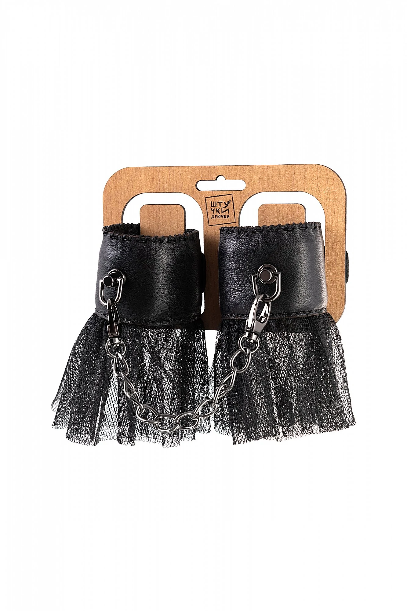 Наручники с сеткой «Штучки-Дрючки» Возбуждающие игры в подчинение, перевоплощение в соблазнительную пленницу или секс-ремейк любимых эпизодов из кино с наручниками «Штучки-Дрючки» любой сценарий получится с первого дубля. Мягкий материал наручников и регулируемые заклепки делают игру максимально комфортной: удобно сковывают и не натирают нежную кожу запястий. Металлическая цепочка надежно удерживает руки «пленницы» даже во время активных действий, не давая ей освободиться. Сочетание кожи, стальных заклепок и невесомого фатина придают образу дерзости. «Штучки-Дрючки» отлично дополняют ролевые костюмы или комплекты со стрепами. Но самые смелые могут не надевать ничего, кроме этого, стильного аксессуара и выглядеть сногсшибательно. Возьми же кожаные наручники «Штучки-Дрючки» и сыграй свою главную роль!