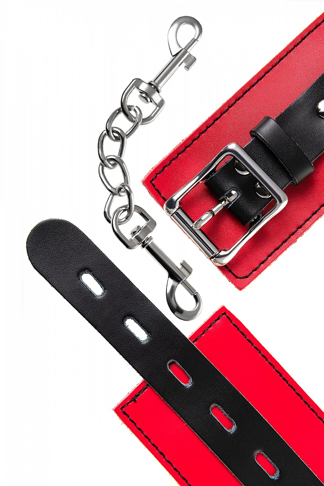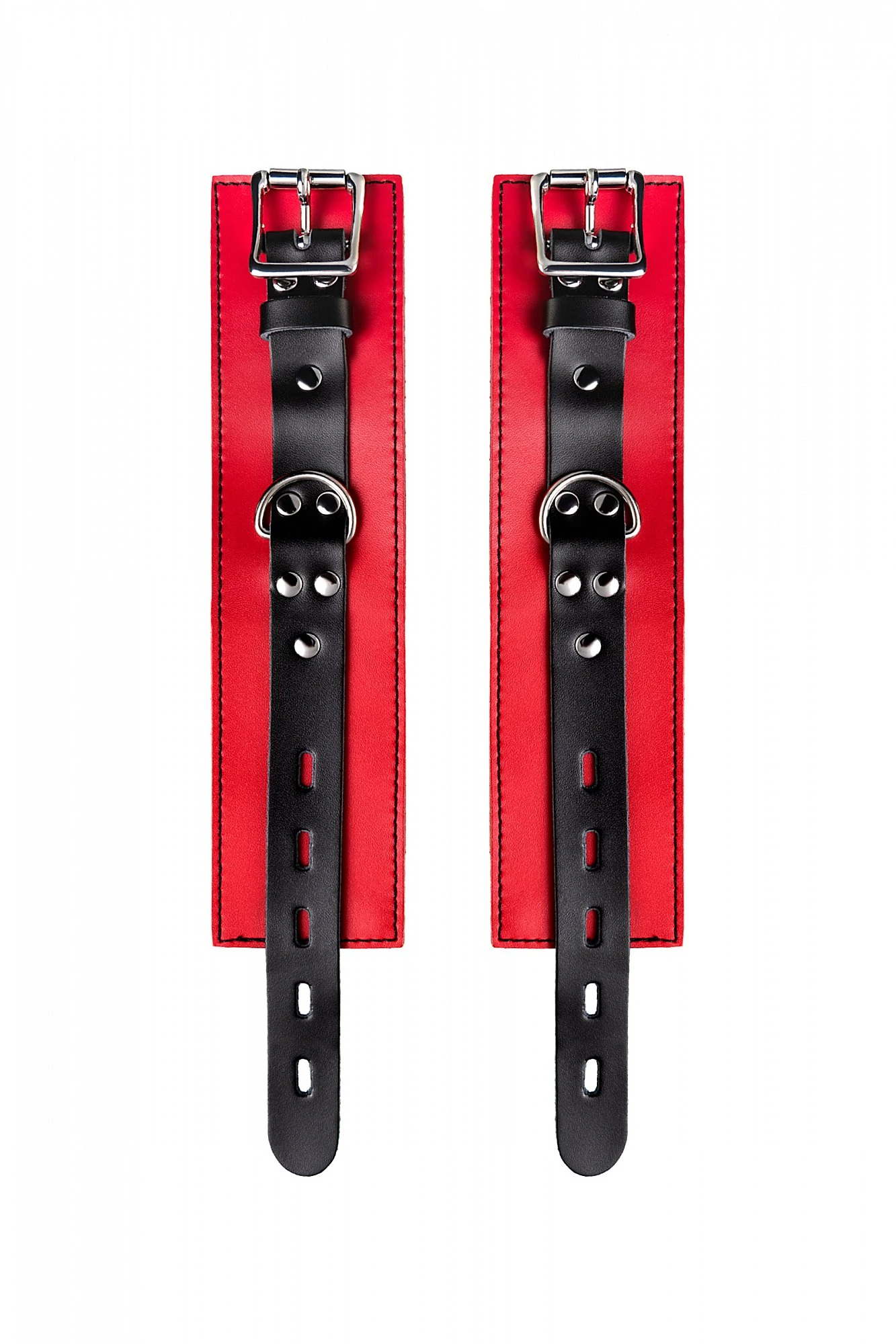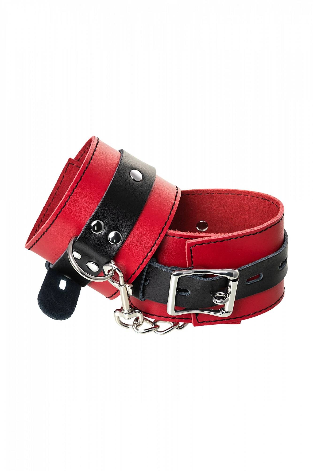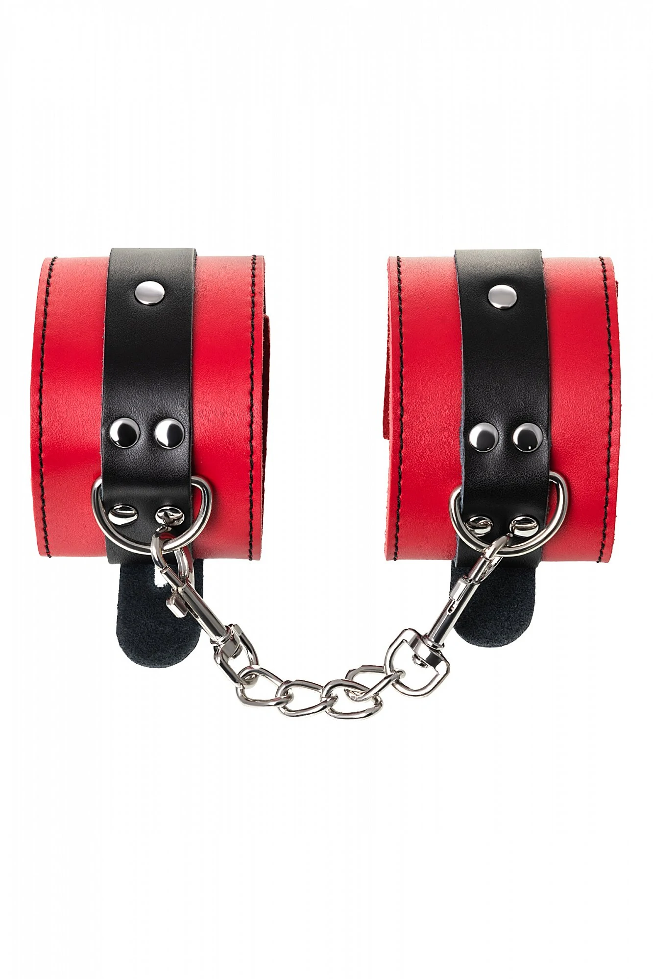 Наручники - волнующий воображение аксессуар, ведь это способ зафиксировать руки партнера и получить полный доступ к его телу. Но не забудьте про стоп-слово. Наручники из мягкой натуральной кожи сочетают в себе элементы, возбуждающие страсть и фантазию: красный и черный цвета и отделка металлическими элементами. В них будет комфортно подчиняться и ощущать ограничение свободы действий. Не натирают и имеют надежную степень фиксации. Размер легко регулируется металлической пряжкой. Эта пара - отличный вариант для начинающих в БДСМ-играх. Так почему бы не открыть для себя что-то новое? Длина наручников 23 см, ширина наручников 6 см, длина сцепки 15,5 см.