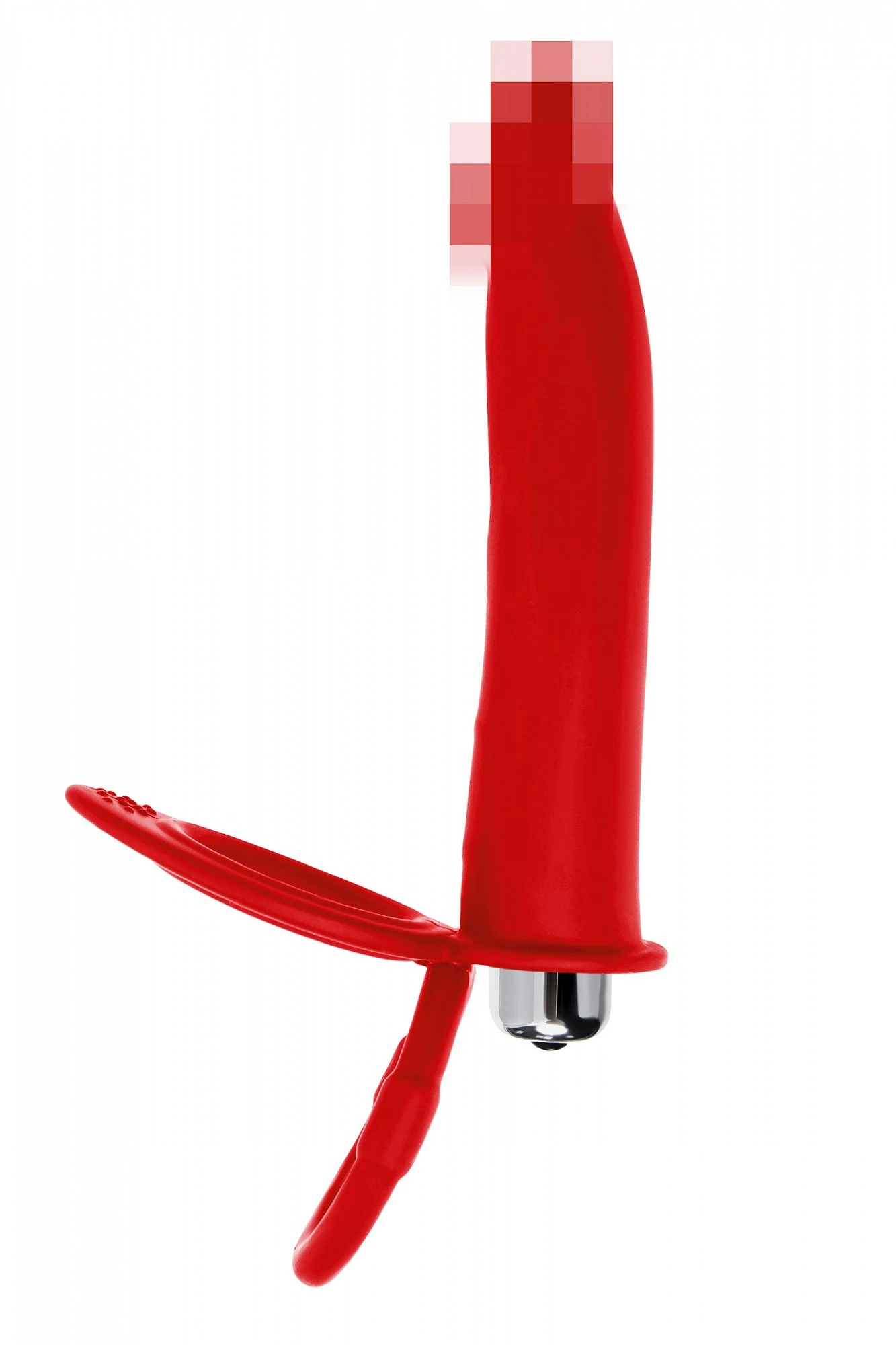 Насадка на пенис для двойного проникновения - это отличный выбор для любителей продвинутых сексуальных развлечений без участия третьих лиц. Встроенная вибропуля добавит ярких ощущений с помощью 10 режимов вибрации. Насадка надежно фиксируется на теле двумя кольцами, которые плотно обхватывают ствол пениса и мошонку. Это оказывает дополнительный эффект для продления полового акта, а партнер в это время получает в два раза больше удовольствия, что ускоряет приближение оргазма. Гладкий ствол и слегка изогнутая головка с дополнительным рельефом отлично стимулирует эрогенные зоны. Рабочая длина насадки 13 см, диаметр в самой широкой части 2,6 см. Диаметр колец 3,5 - 3,8 см. Цвет: красный. Для более комфортного использования рекомендуем приобрести смазку на водной основе и очищающий спрей Clear Toy 100 мл для обработки изделия.