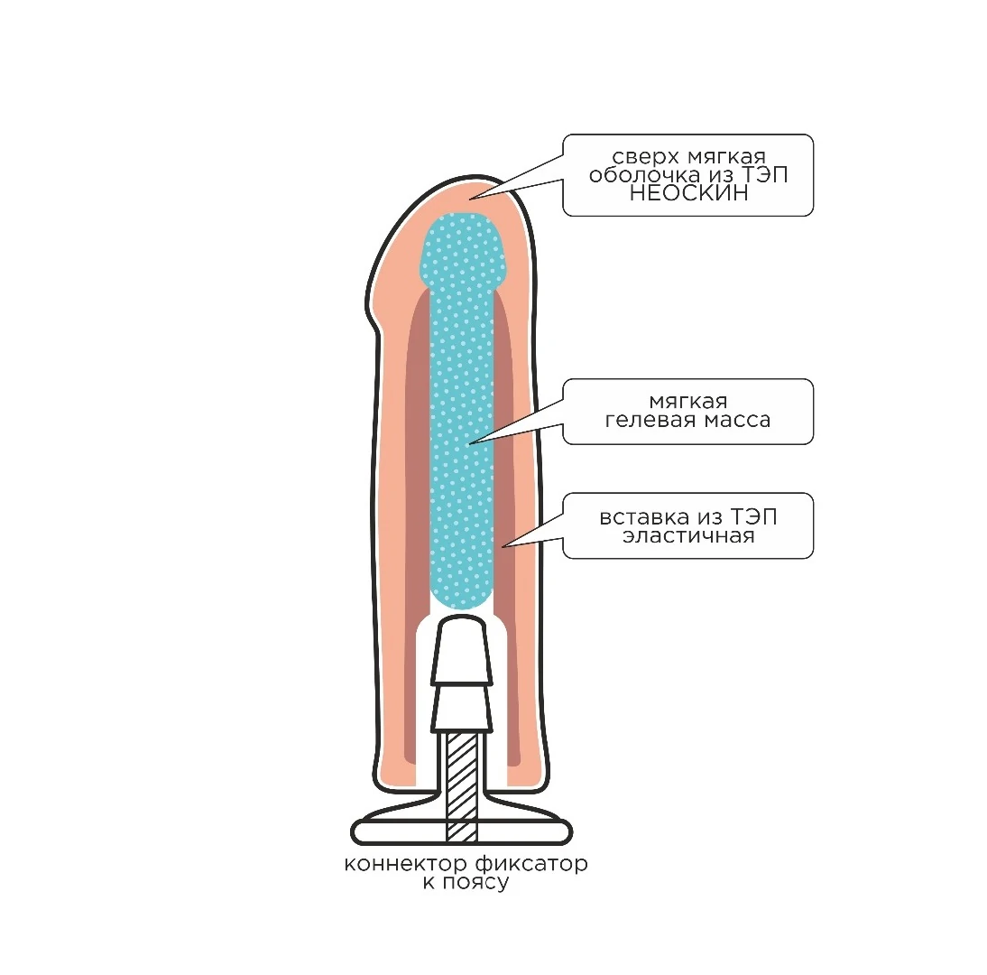 сопротивлению на сгибание – как у лучших мужчин. Верхняя треть более подвижна и этим обеспечиваются нежнейшие ласки входа во влагалище. Композитная конструкция из полужесткого эластичного каркаса и очень мягкой, шелковистой киберкожи,покрывающей