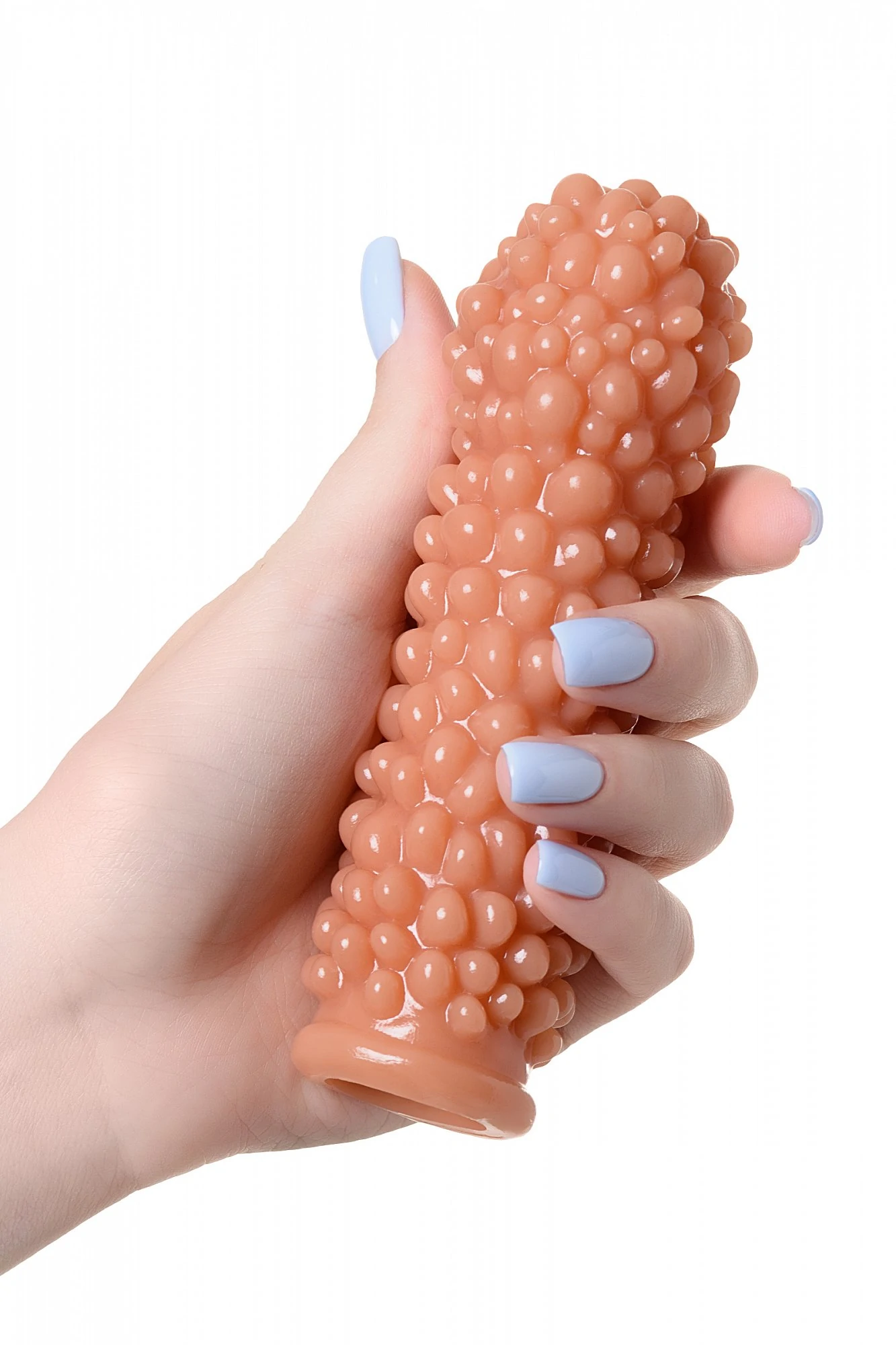 Увеличивающая насадка с впечатляющей дополнительной стимуляцией решает сразу 3 задачи: дарит удовольствие обоим партнерам, позволяет экспериментировать с секс-игрушками и выводит интимную жизнь на более высокий уровень.Желанное разнообразие! Насадка придает члену внушительный объем и новую форму, поэтому как нельзя лучше подходит для сценариев «Секс с незнакомцем». При этом выразительный рельеф с плотно посаженными выпуклыми пузырьками привносит незабываемый эффект новизны в ощущения партнерши. В то время как женщина испытывает потрясающее чувство наполненности и получает интенсивную стимуляцию стенок влагалища, мужчина наслаждается более продолжительным половым актом и возбуждающими оргазмами партнерши. Киберкожа прекрасно передает всю мощность вибраций, поэтому насадку можно использовать не только с партнером, но и с любимым вибратором. Kokos превосходно тянется и легко надевается на член, обеспечивая при этом плотное и комфортное прилегание. Размер: длина 12,7 см, диаметр 3,7 см.