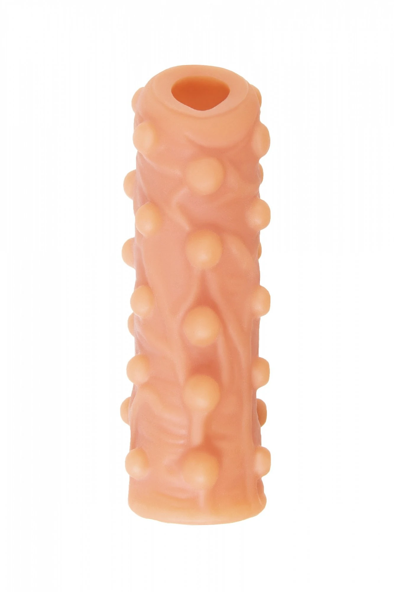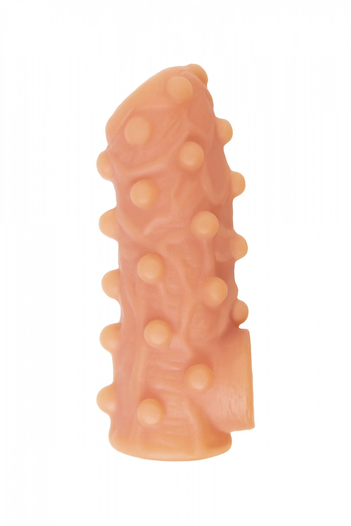 Открытая насадка с фантазийным рельефом в виде вен и пупырышек открывает новые возможности для взаимного удовольствия и воплощает фантазии о внушительном размере пениса. Увеличенный размер и объем полового члена добавляет мужчине уверенности в своих сексуальных возможностях. Дополнительная стимуляция партнерши для яркого и насыщенного оргазма. Увеличение продолжительности полового акта у мужчины - задержка эякуляции, и наращивание темпа приближения оргазма у женщины.  Реалистичная насадка на пенис - необходимый элемент для вашей сексуальной игры, если вы хотите максимально удовлетворить свою партнершу и сделать ваш секс незабываемым. Для более комфортного использования рекомендуем приобрести смазку на водной основе и очищающий спрей Clear Toy 100 мл для обработки изделия.
