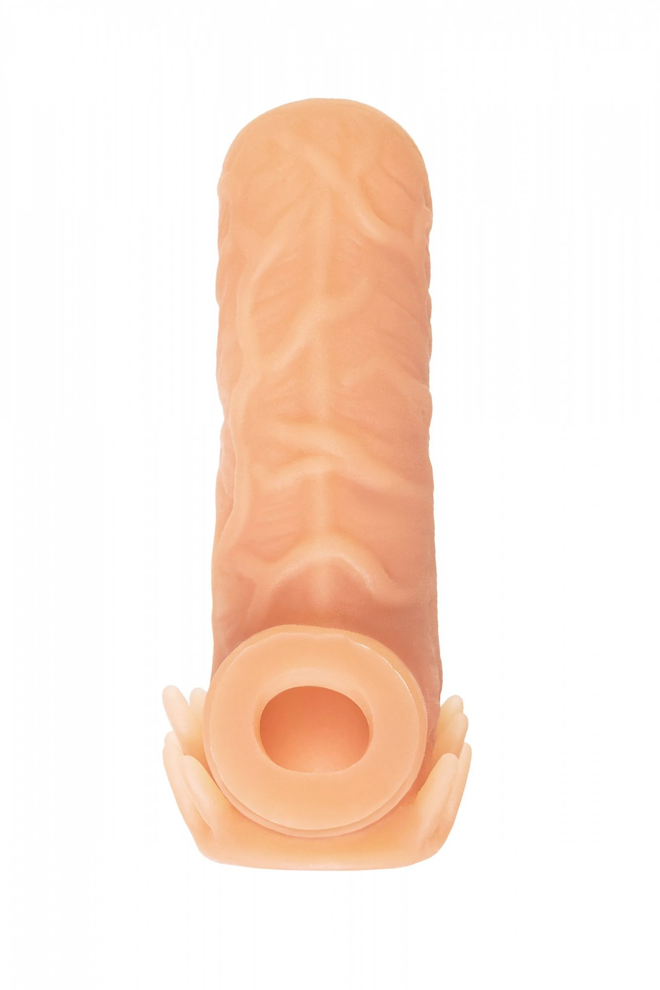 Открытая насадка с фантазийным рельефом в виде вен и пупырышек открывает новые возможности для взаимного удовольствия и воплощает фантазии о внушительном размере пениса. Увеличенный размер и объем полового члена добавляет мужчине уверенности в своих сексуальных возможностях. Дополнительная стимуляция партнерши для яркого и насыщенного оргазма. Увеличение продолжительности полового акта у мужчины - задержка эякуляции, и наращивание темпа приближения оргазма у женщины.  Реалистичная насадка на пенис - необходимый элемент для вашей сексуальной игры, если вы хотите максимально удовлетворить свою партнершу и сделать ваш секс незабываемым. Для более комфортного использования рекомендуем приобрести смазку на водной основе и очищающий спрей Clear Toy 100 мл для обработки изделия.