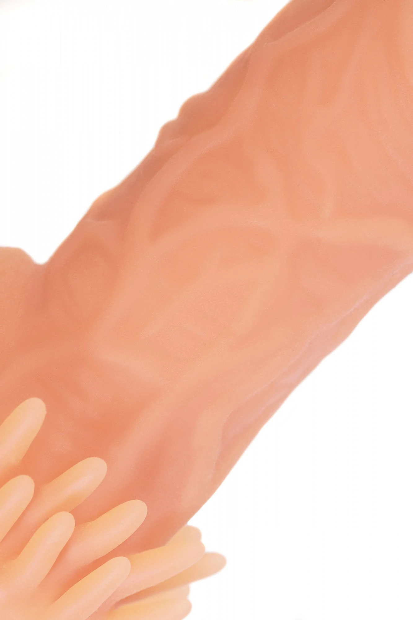 Открытая насадка с фантазийным рельефом в виде вен и пупырышек открывает новые возможности для взаимного удовольствия и воплощает фантазии о внушительном размере пениса. Увеличенный размер и объем полового члена добавляет мужчине уверенности в своих сексуальных возможностях. Дополнительная стимуляция партнерши для яркого и насыщенного оргазма. Увеличение продолжительности полового акта у мужчины - задержка эякуляции, и наращивание темпа приближения оргазма у женщины.  Реалистичная насадка на пенис - необходимый элемент для вашей сексуальной игры, если вы хотите максимально удовлетворить свою партнершу и сделать ваш секс незабываемым. Для более комфортного использования рекомендуем приобрести смазку на водной основе и очищающий спрей Clear Toy 100 мл для обработки изделия.
