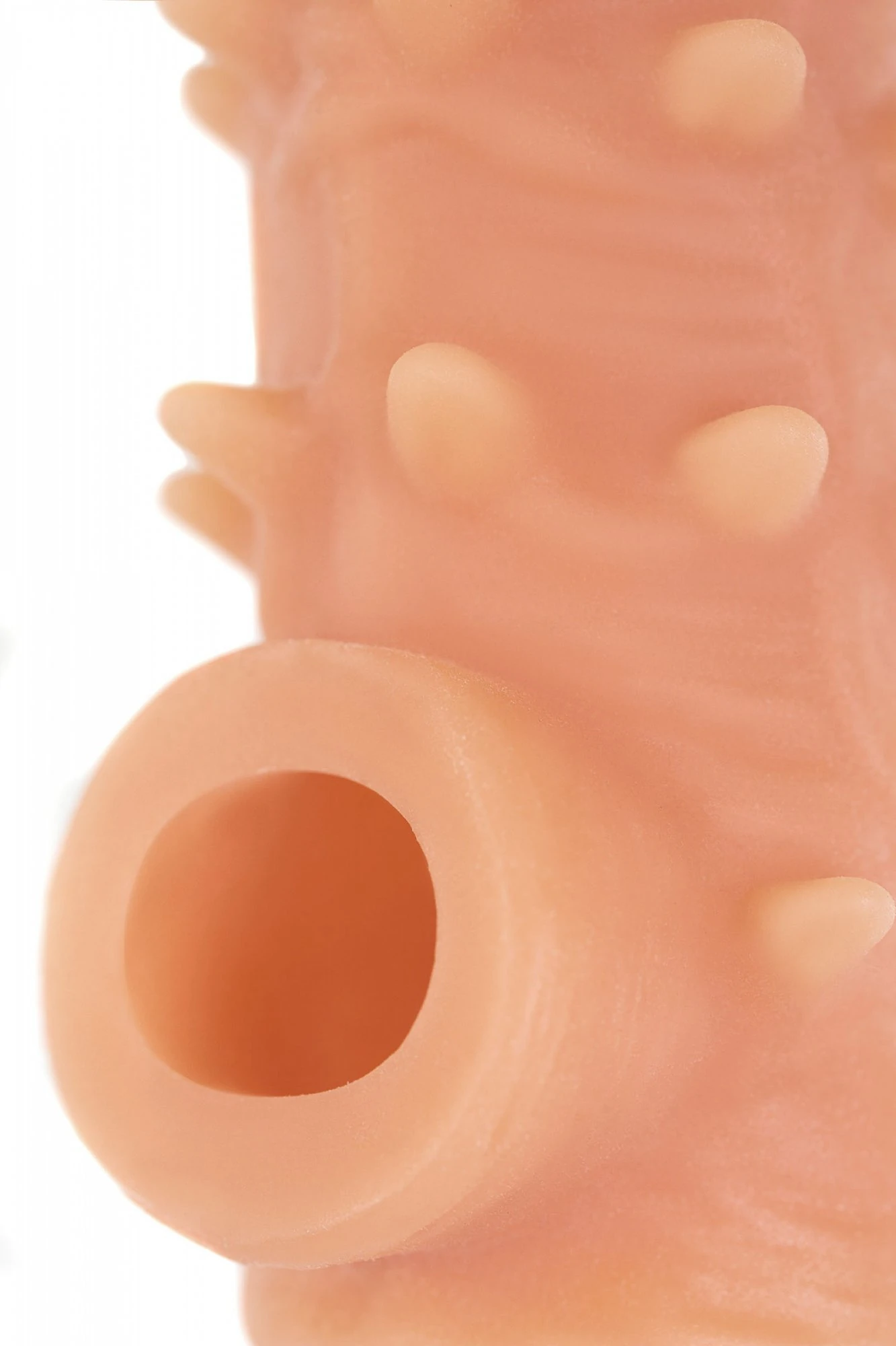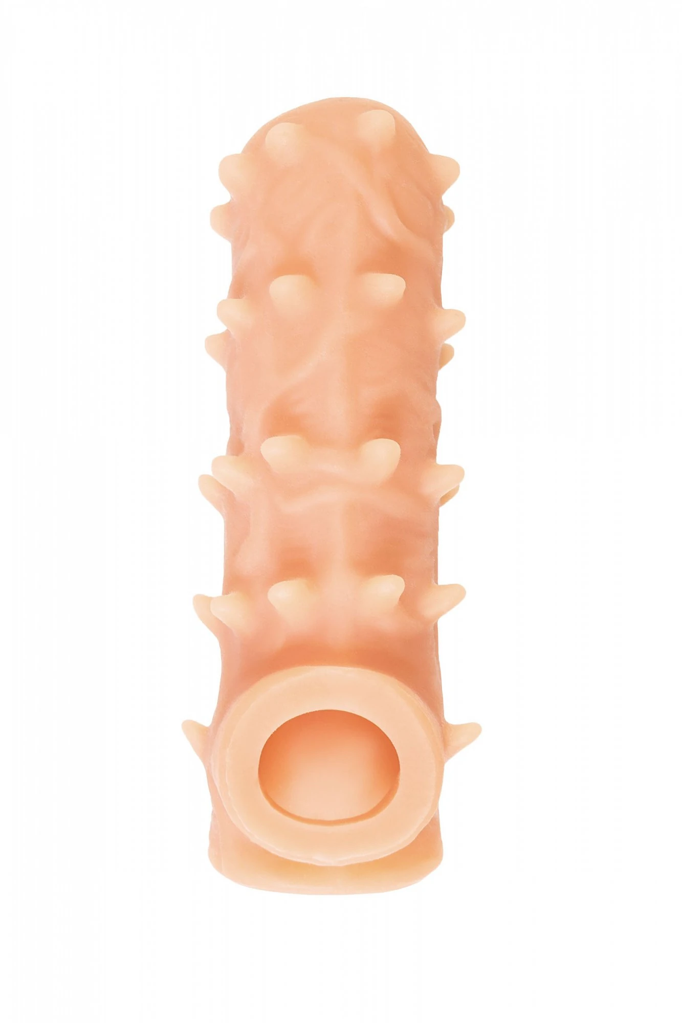 Открытая насадка с фантазийным рельефом в виде вен и пупырышек открывает новые возможности для взаимного удовольствия и воплощает фантазии о внушительном размере пениса. Увеличенный размер и объем полового члена добавляет мужчине уверенности в своих сексуальных возможностях. Дополнительная стимуляция партнерши для яркого и насыщенного оргазма. Увеличение продолжительности полового акта у мужчины - задержка эякуляции, и наращивание темпа приближения оргазма у женщины.  Реалистичная насадка на пенис - необходимый элемент для вашей сексуальной игры, если вы хотите максимально удовлетворить свою партнершу и сделать ваш секс незабываемым. Для более комфортного использования рекомендуем приобрести смазку на водной основе и очищающий спрей Clear Toy 100 мл для обработки изделия.